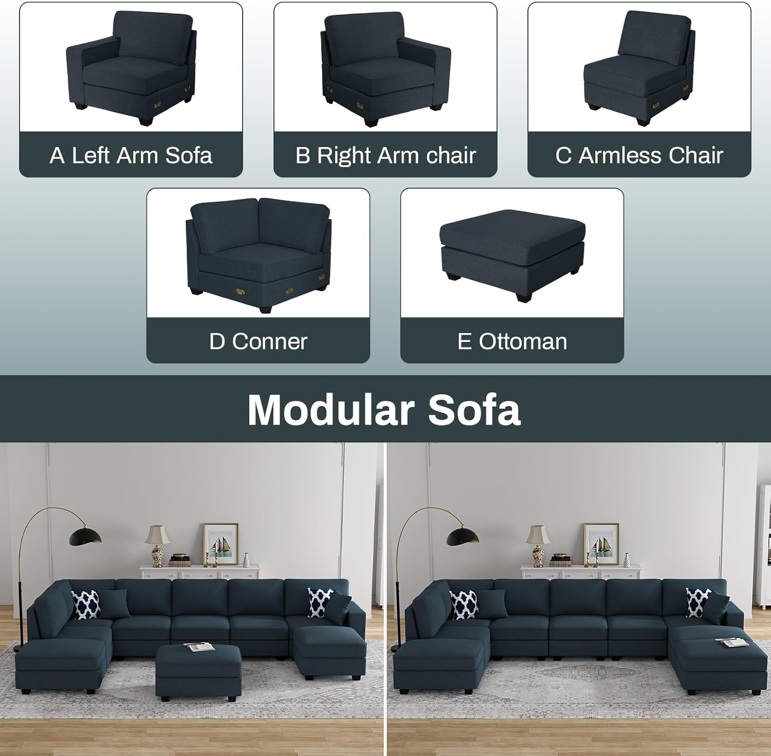 - 【Quick Assembly】All the parts and tools of the sectional couches for living room are included in the package, our sectional sofas for living room comes with a clear and easy to understand installation manual, you just need to follow our step by step assembly, you can get a nice big comfy couch in a short time, and at the same time, you will have a comfortable resting space.