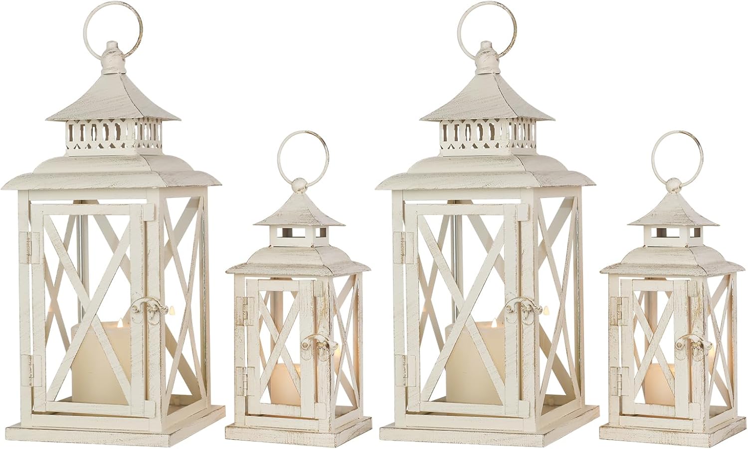 - 【Beautiful Vintage Lantern Decor】Enhance your home decor in a unique way with the cute lanterns by NEEDOMO! The simple and elegant finish with the classy metal and visible glass in a stylish distressed white look make them the perfect addition to your vintage decor in your front porch, garden, hallway!