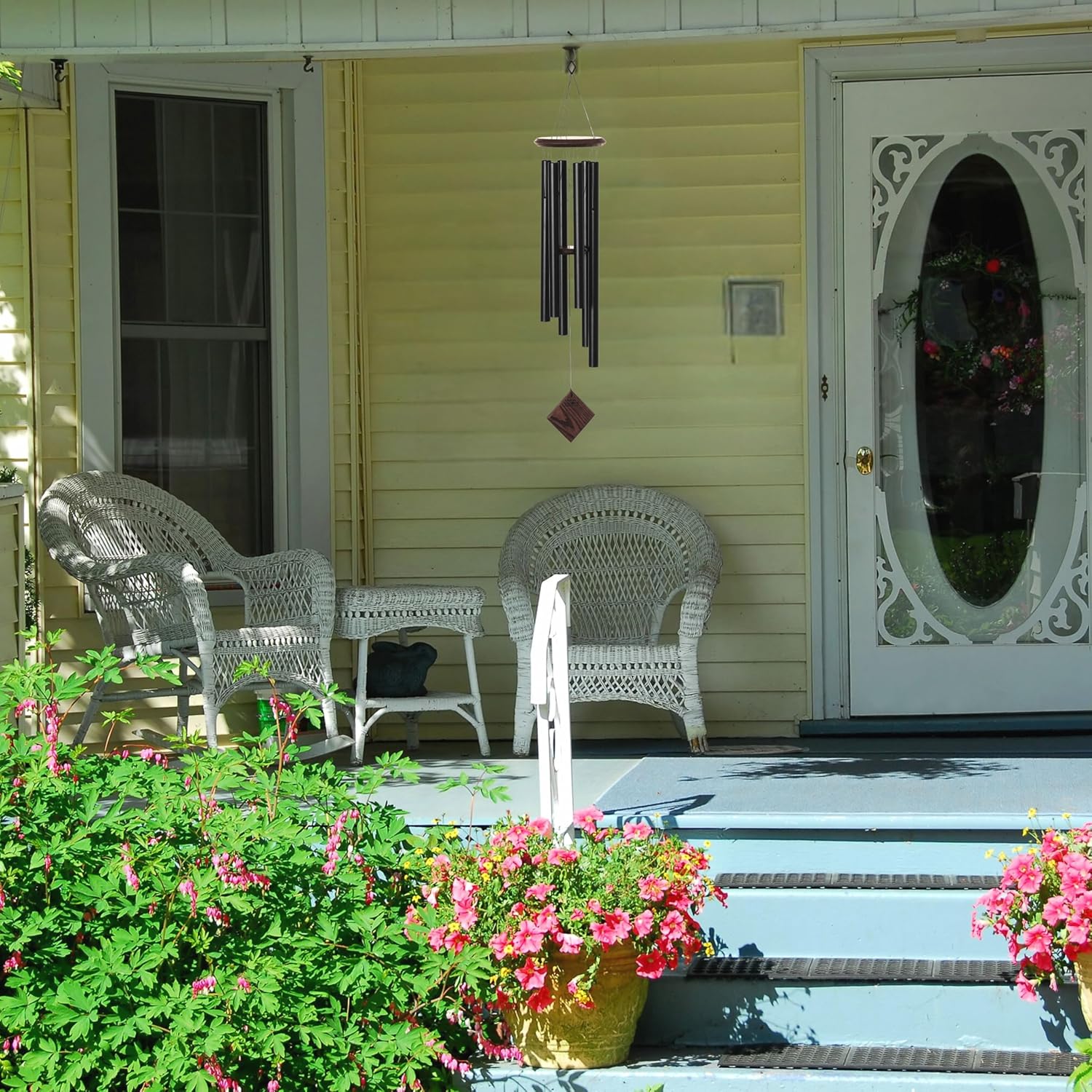 - Wind Chimes for Outside, Outdoor or Indoor Spaces - These versatile chimes are perfect for enhancing any space, whether it's your garden, patio, deck, backyard, or even indoors. Measures 37'' long from the top of the gathering ring to the end of the windcatcher.