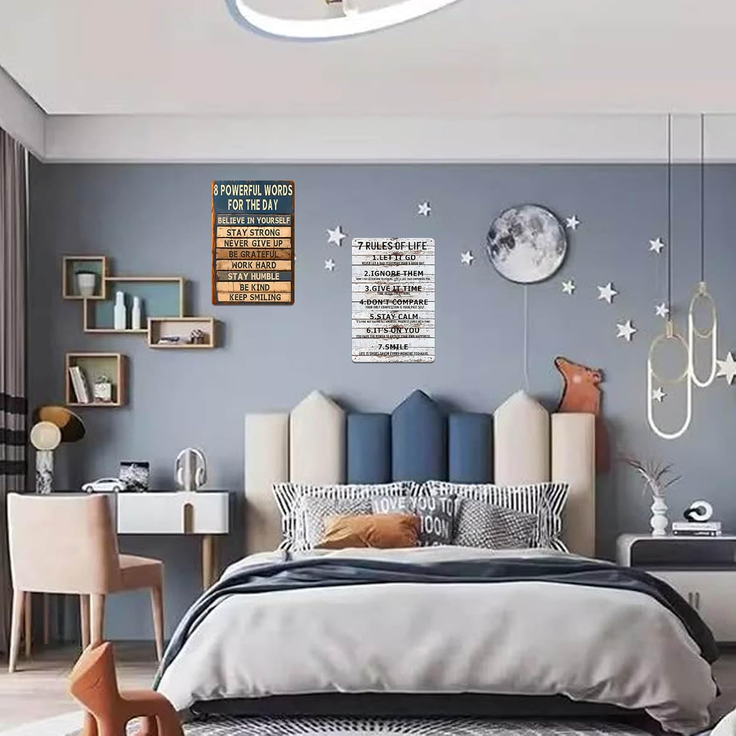 Teen Boys Room Decor - Cool Inspirational Wall Art Teenage Girl Bedroom Stuff 7 Rules of Life Metal Tin Signs for 10-18 Year Old Teens Room Accessories 8x12 Inch