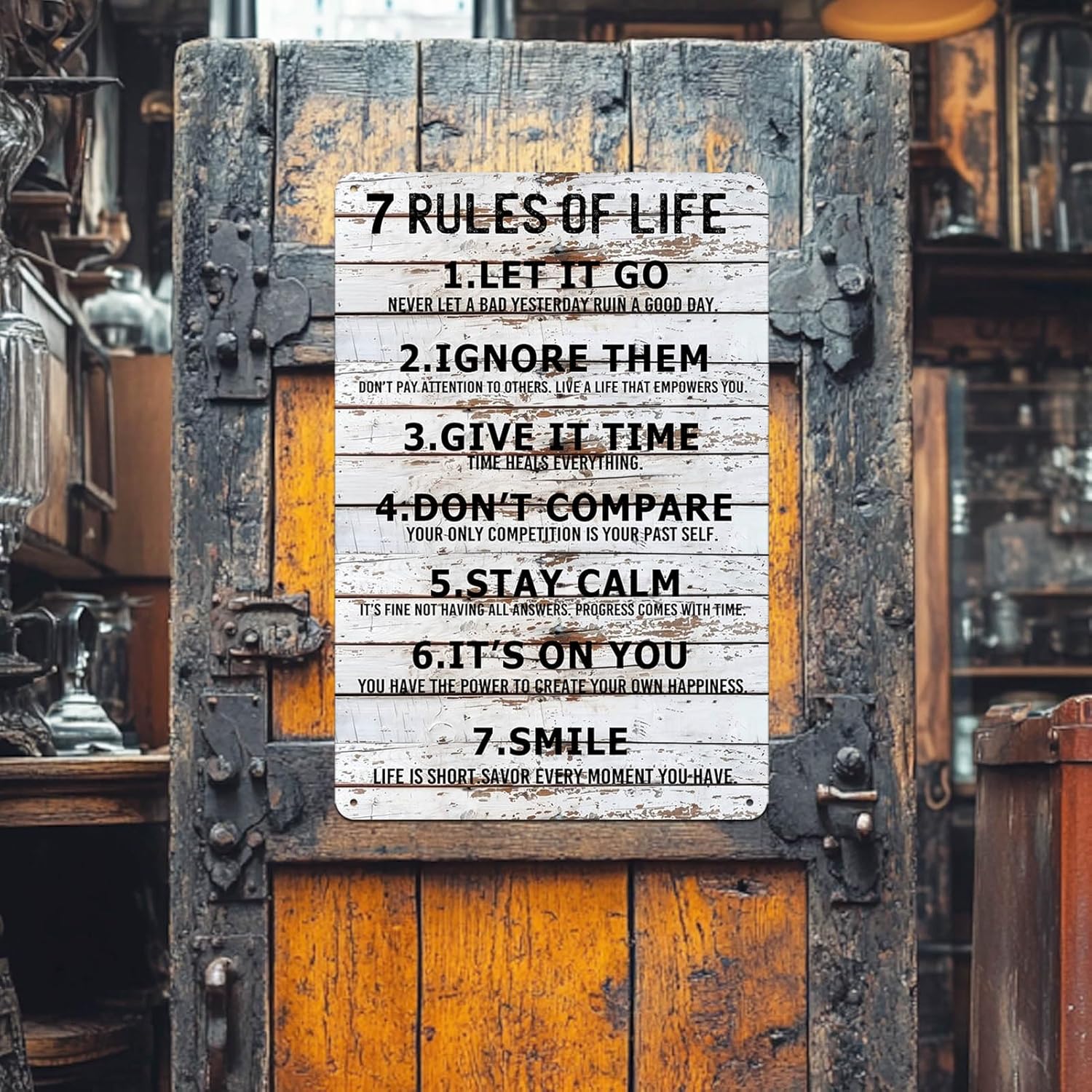 - EASY INSTALLATION - 7 rules of life sign come with 4 pre-drilled holes for quick mounting on any surface. No adhesives or special tools required. Rolled edges allow safe handling and installation.