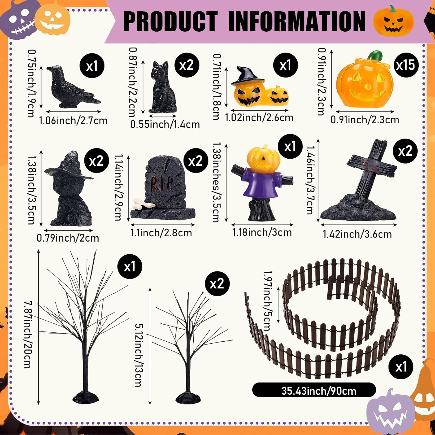 - Package Inclusion: you will receive 30 pieces of Halloween village accessories, including 3 black Halloween trees, 1 fence, 26 Halloween garden miniatures, such as cat, pumpkin, easter bird, tombstone; This comprehensive set allows you to construct a complete Halloween tableau