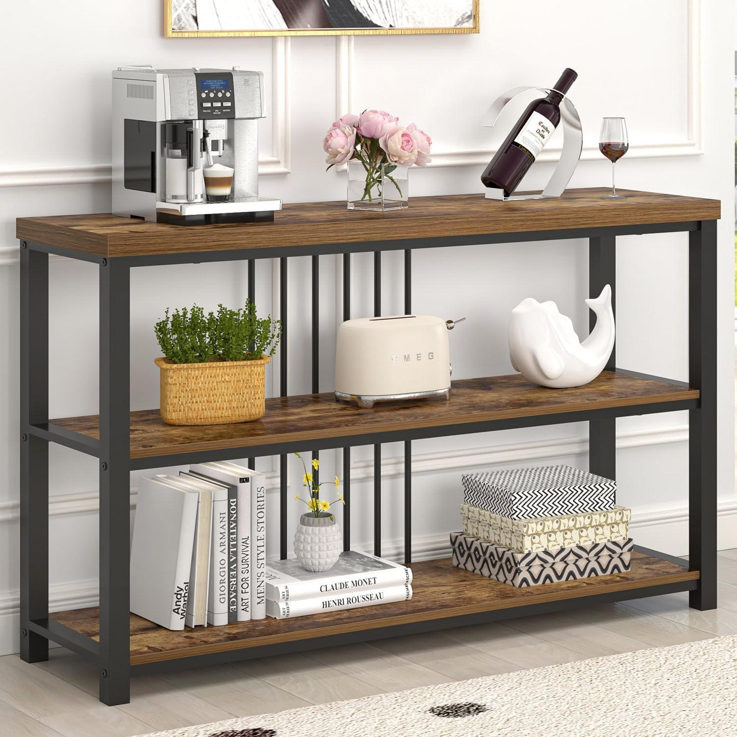 FOLUBAN Industrial Console Table, 3 Tier Entryway Table, Sofa Foyer Table for Living Room Hallway Behind Couch, Rustic Brown