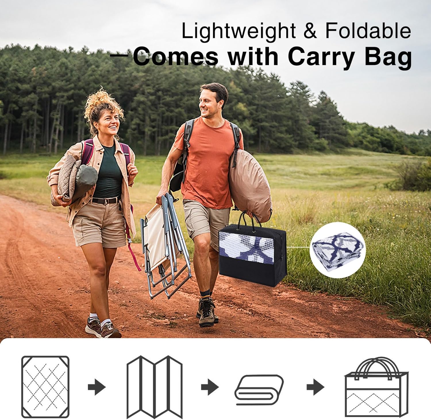 - Lightweight & Portable: Easy to fold and carry, this camping rug is your go-to for outdoor adventures. Ideal for camping trips, gatherings, or sports events, it ensures comfort and style wherever you go.
