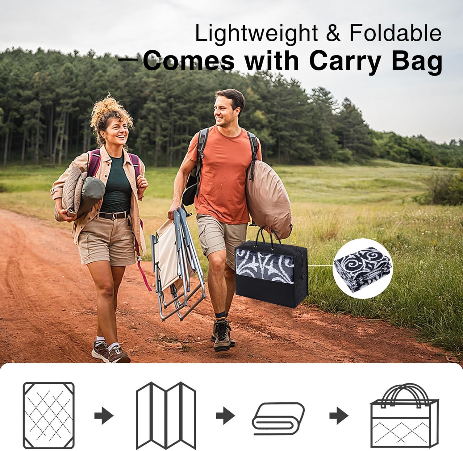 - Lightweight & Portable: Ultra-lightweight and foldable, this outdoor rug is a breeze to carry and store. Take it to picnics, beach outings, or camping trips with ease. Perfect for casual outdoor gatherings, it combines practicality with effortless portability.