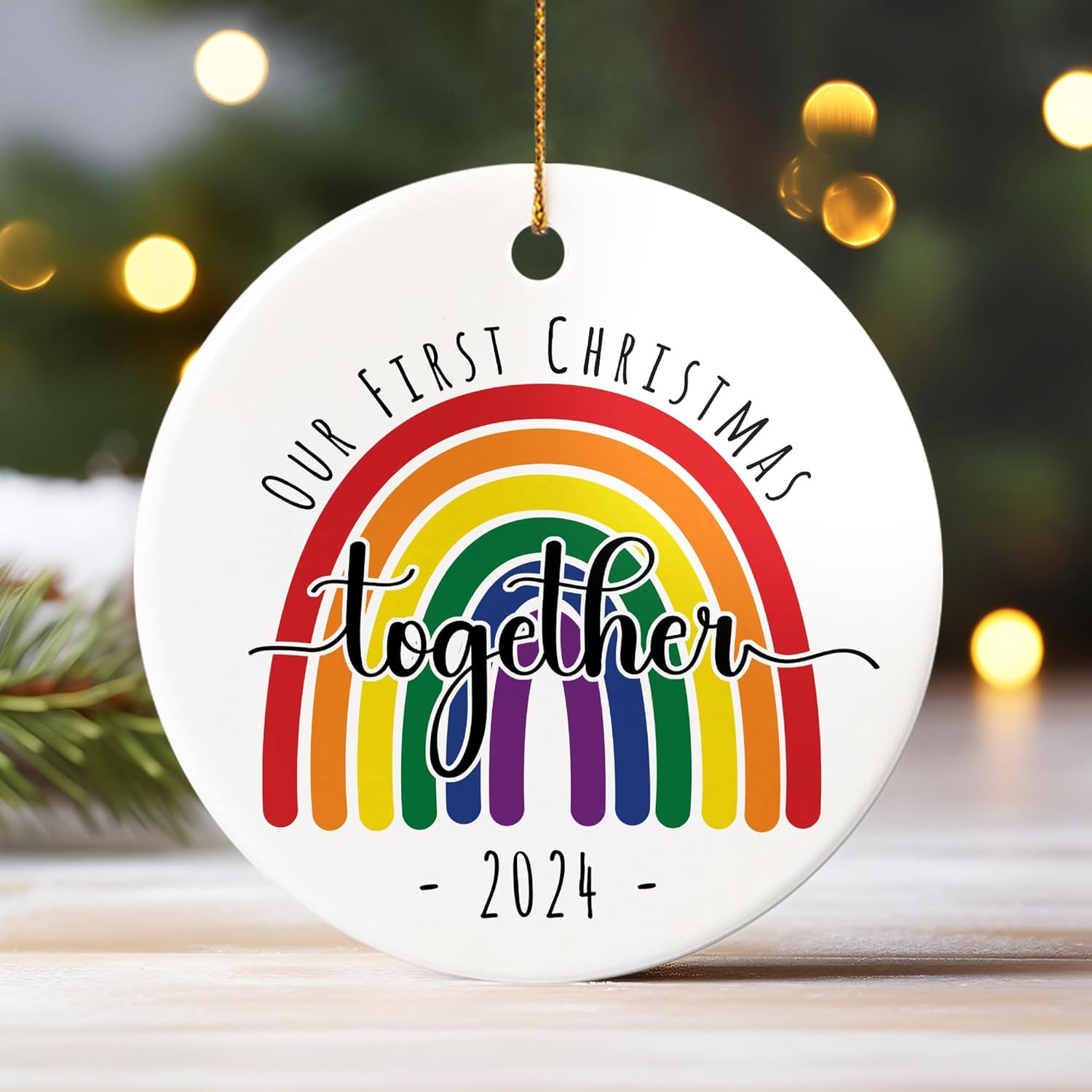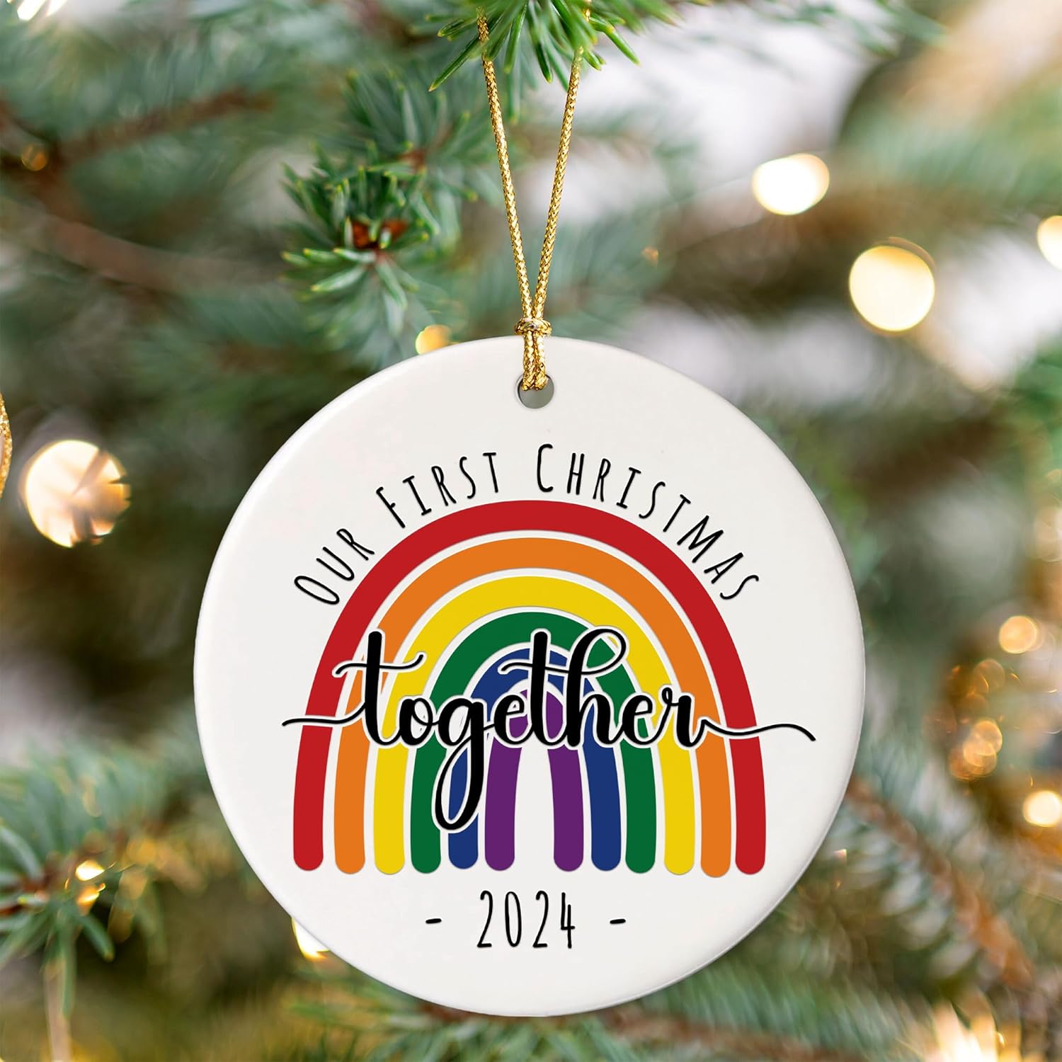 Our First Christmas Together LGBT Ornament, Gift for Couple LGBT, Couple LGBT Keepsake Decor Xmas Tree, Pride LGBT Ornament Christmas 2024, Rainbow Gift