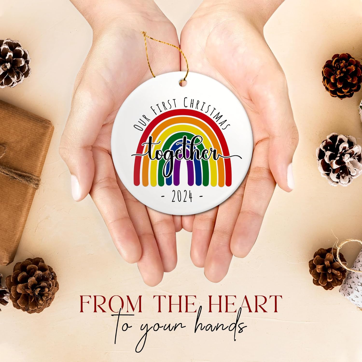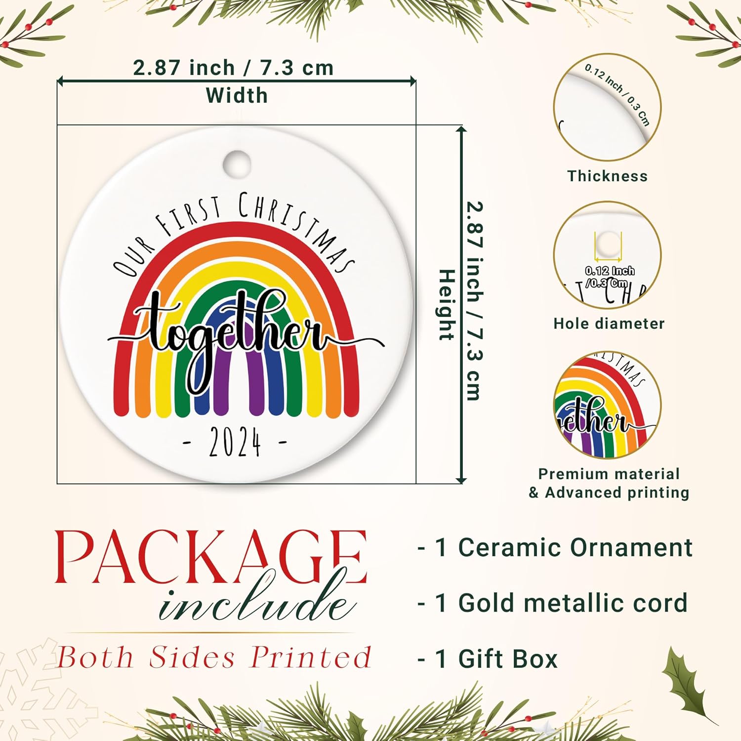 - ๐HIGH QUALITY & PERFECT SIZE: LGBTQ Ornament is made of high quality ceramic, not rough, very high definition and delicate. Measuring 2.87 inches in width and 0.12 inches in thickness, itโs perfect to hang on the Christmas tree as a decoration to attract attention or to give as Christmas gifts to your friends, family.