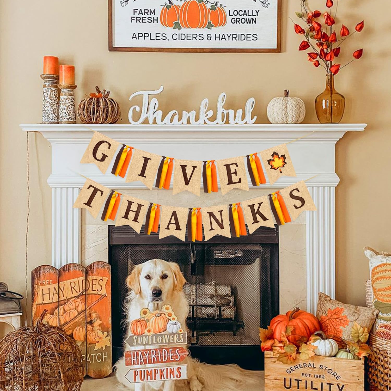 - Material and Handmade - Our thanksgiving banner are made from quality jute natural burlap,The felt GIVE THANKS signs and the maple leaf are carefully hand-made then machine-sewn on the burlap with thread.safe and odorless,durable and reusable.
