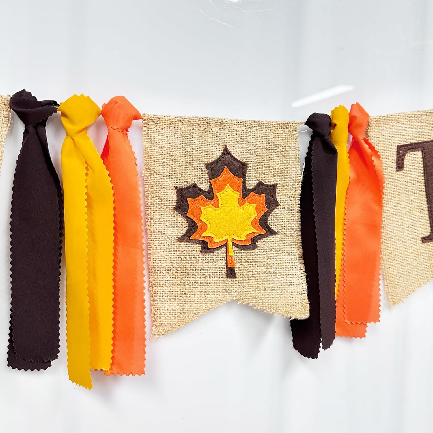 - Unique Design - Unique combination of felt and linen burlap and ribbon,classic fall thanksgiving slogan and 3 layers of felt maple leaf design in fall colors.plus yellow brow orange color ribbon. It makes an attractive backdrop for videos and photos.Make your thanksgiving day decor more special and memorable.
