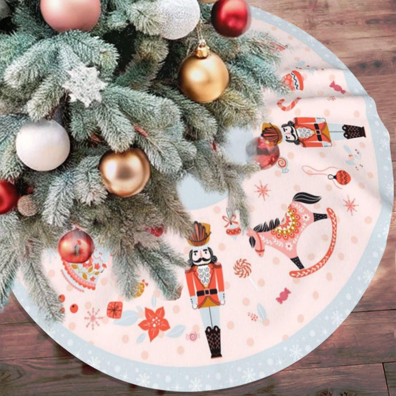 36" Large Christmas Tree Skirt, Nutcracker Candy Pattern Tree Mat Base Cover for Xmas Festive Holiday Party Decoration Ornaments