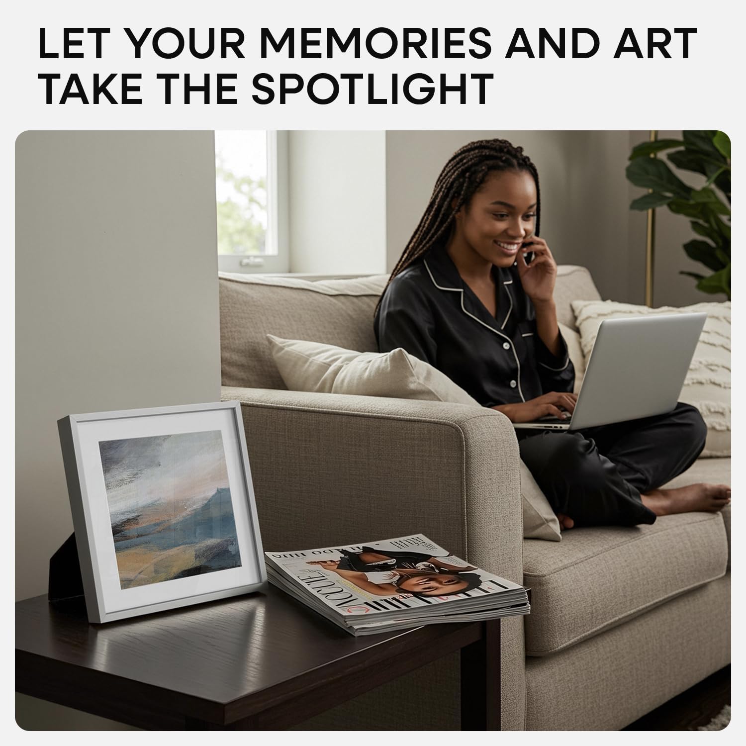 Homeforia 10x10 Picture Frame Silver, High End Metal 10 by 10 Square Frames with Mat 8 x 8 inch Photo, 10by10 Poster Frame Matted to 8x8 Art, Wall or Tabletop Frame, Tempered Glass, Wall Kit, Set of 1
