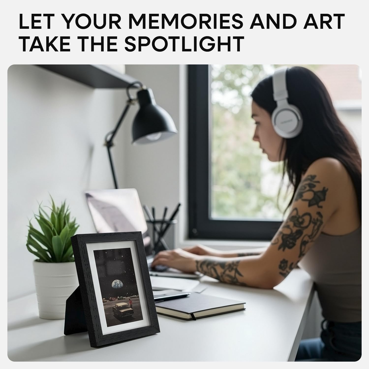 - BUILT FOR WALLS & TABLETOPS. Backed with smart hardware and a refined stand—switch effortlessly from wall-mounted to freestanding.