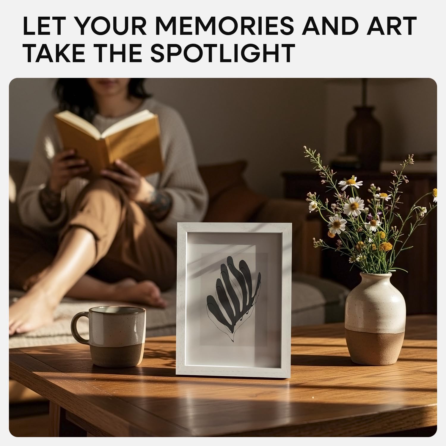 Homeforia A5 Picture Frame White Wood, High-End Oak 5.8x8.3 Frame Matted to 4.1x5.8 inch Photo, A5 Size Walnut Wooden Frames with Mat A6 for Print, 5.8 by 8.3 Frame, Tempered Glass, Wall Kit, Set of 1