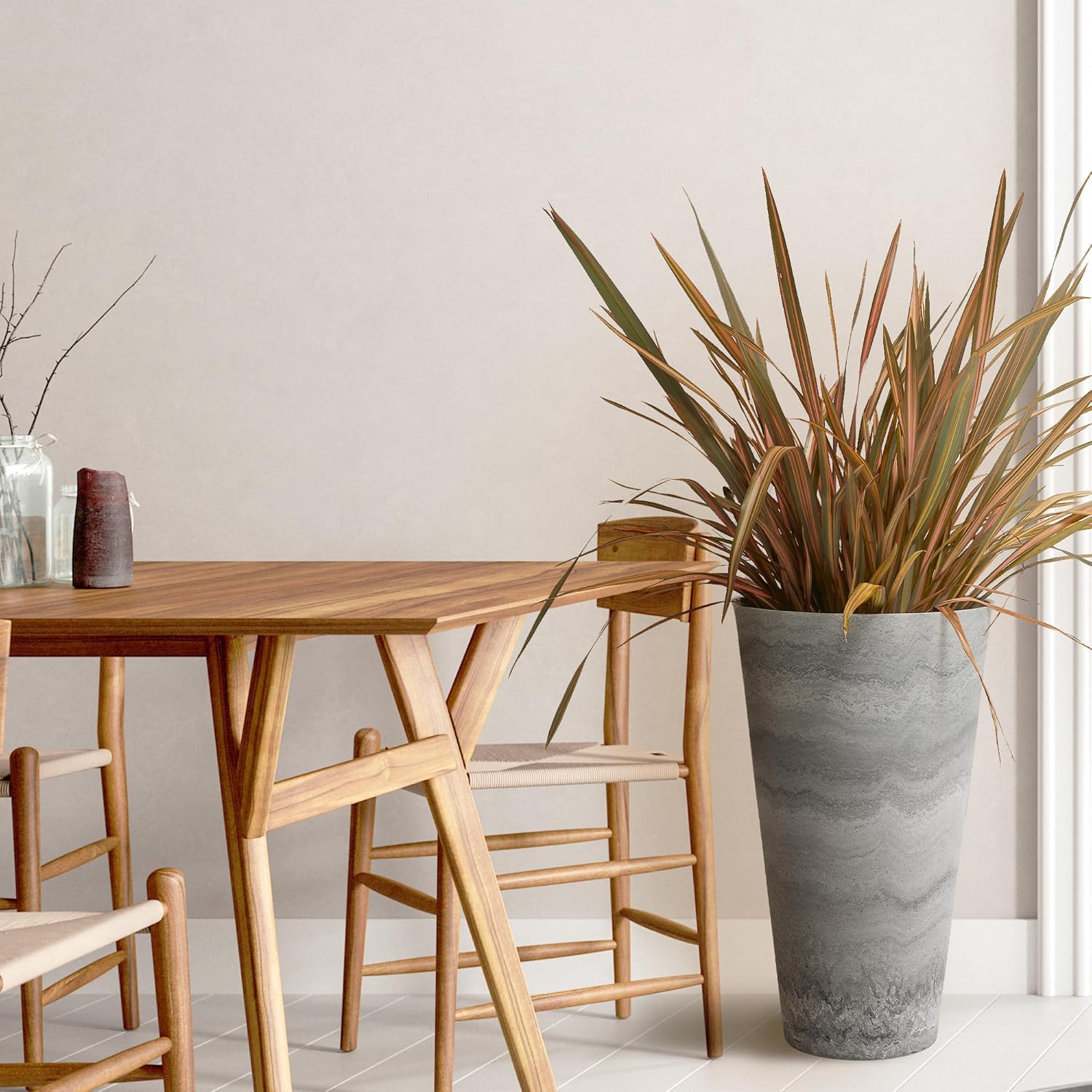 Worth Garden 2-Pack Grey Matte Texture Round Tapered Planter - 24.5" H. Tall Plastic Plant Pots with Drain Hole for Indoor Outdoor - Modern Decorative Flower Pots for Front Porch, Patio, Deck