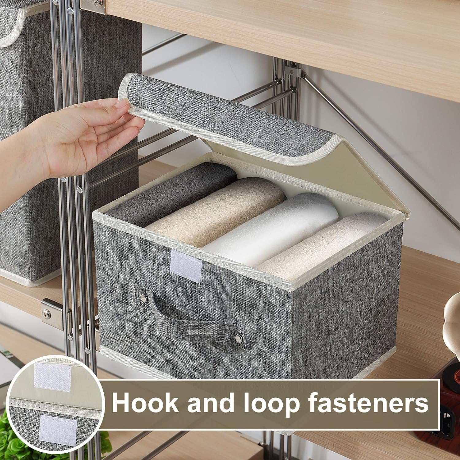 - Flip Storage Bins:10.2 x 7.9 x 6.7 inches,the cloth storage bin can store more items,just one cloth storage box can contain 1 blanket or 4 clothes or 8 T-shirts or 6 towels, convenient and practical