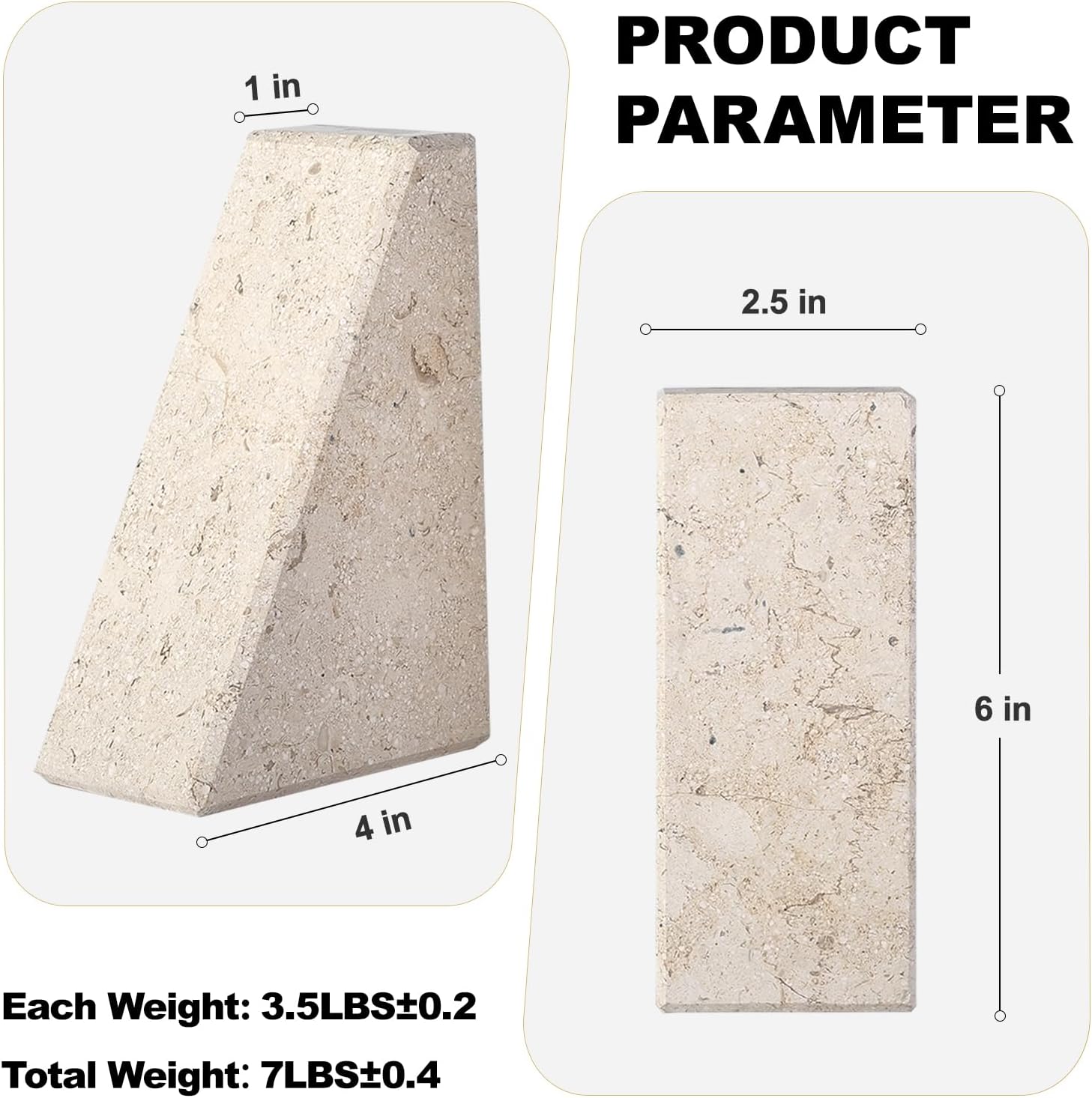 Marble Bookends for Heavy Books, Decorative Book Ends for Shelves, Beige Stone Durable and Heavy-Duty Book Ends for Hardback Books & CDS, Unique Book Stopper & Holder, Set of 2