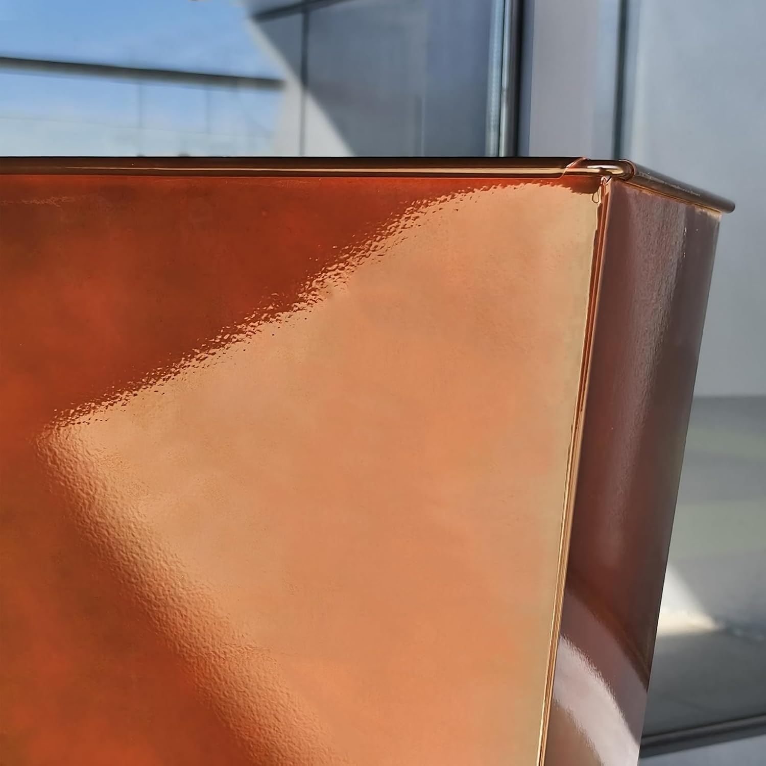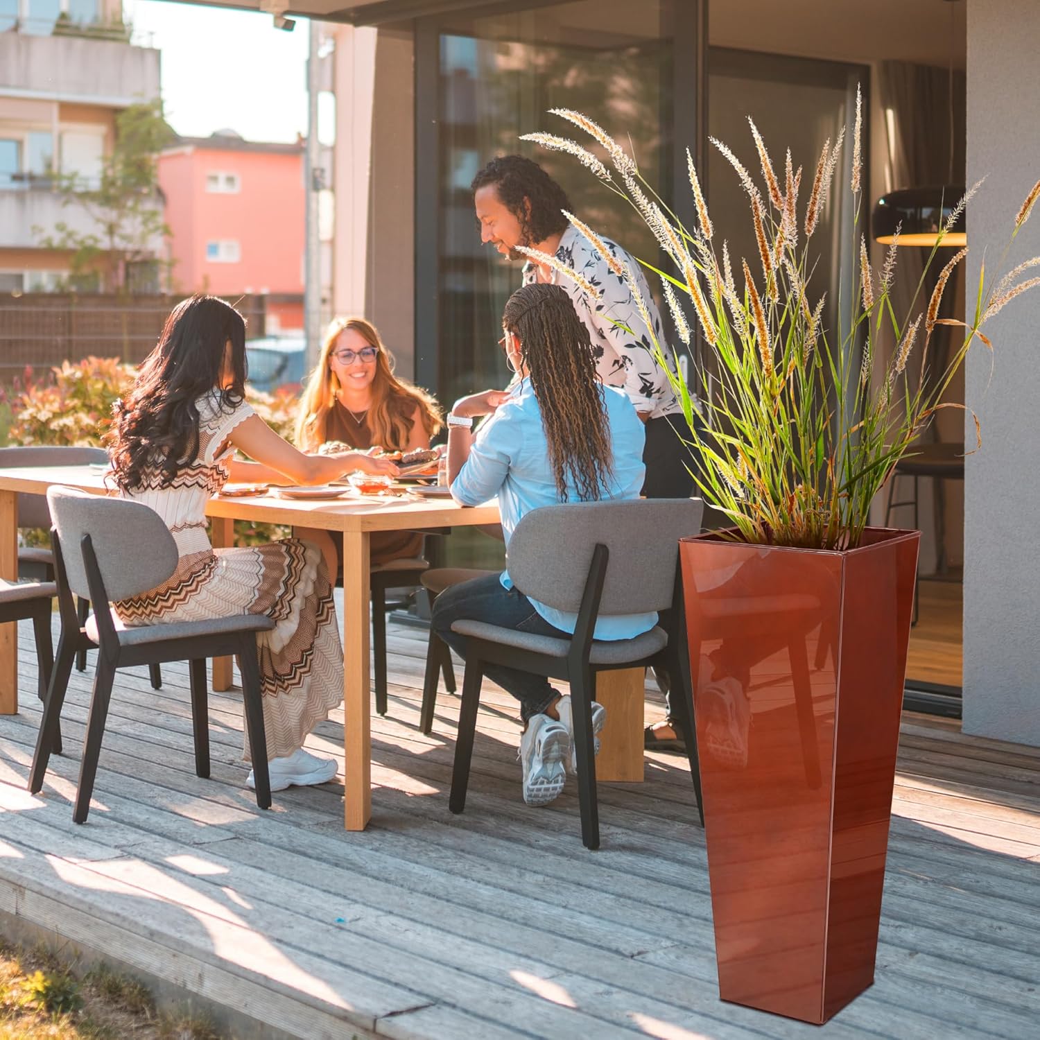 KOL 28''H. Tall Galvanized Steel Glazed Planter with Saucer, Set of 2, Planter Pots with Insert for Indoor & Outdoor Use, Decorative Flower Plant Pots for Front Porch, Patio, Deck - Reddish Brown