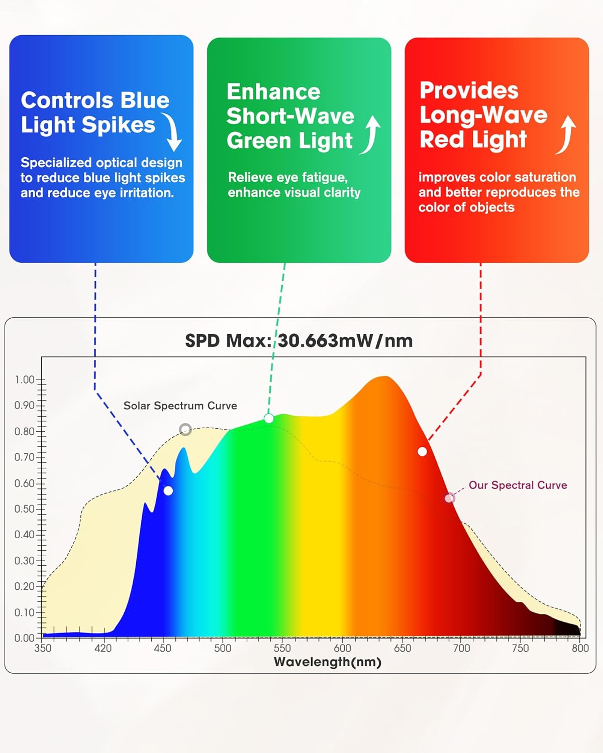 - Professional Eye Protection Lamp: LED floor lamp with advanced full-spectrum technology, color rendering index up to 97 (CRI ≧ 97), can perfectly restore the true color of the object, no glare, no blue light and other multiple eye protection technology, to adapt to the visual needs of different scenarios