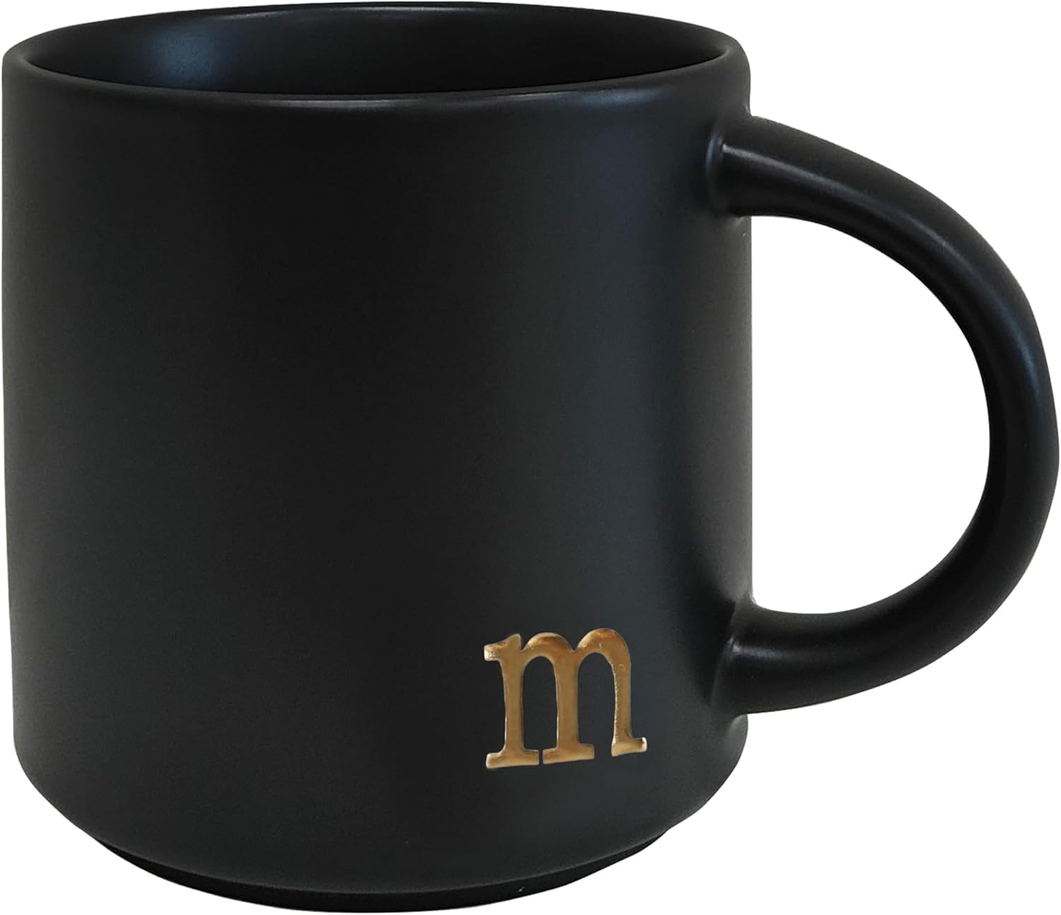 COLLECTIVE HOME - Black Monogram Ceramic Mugs, 15 oz Golden Initial Coffee Cups, Elegant Alphabet Tea Mugs, Personalized Halloween Mug with Gift Box, Perfect for Office and Home Décor (m)