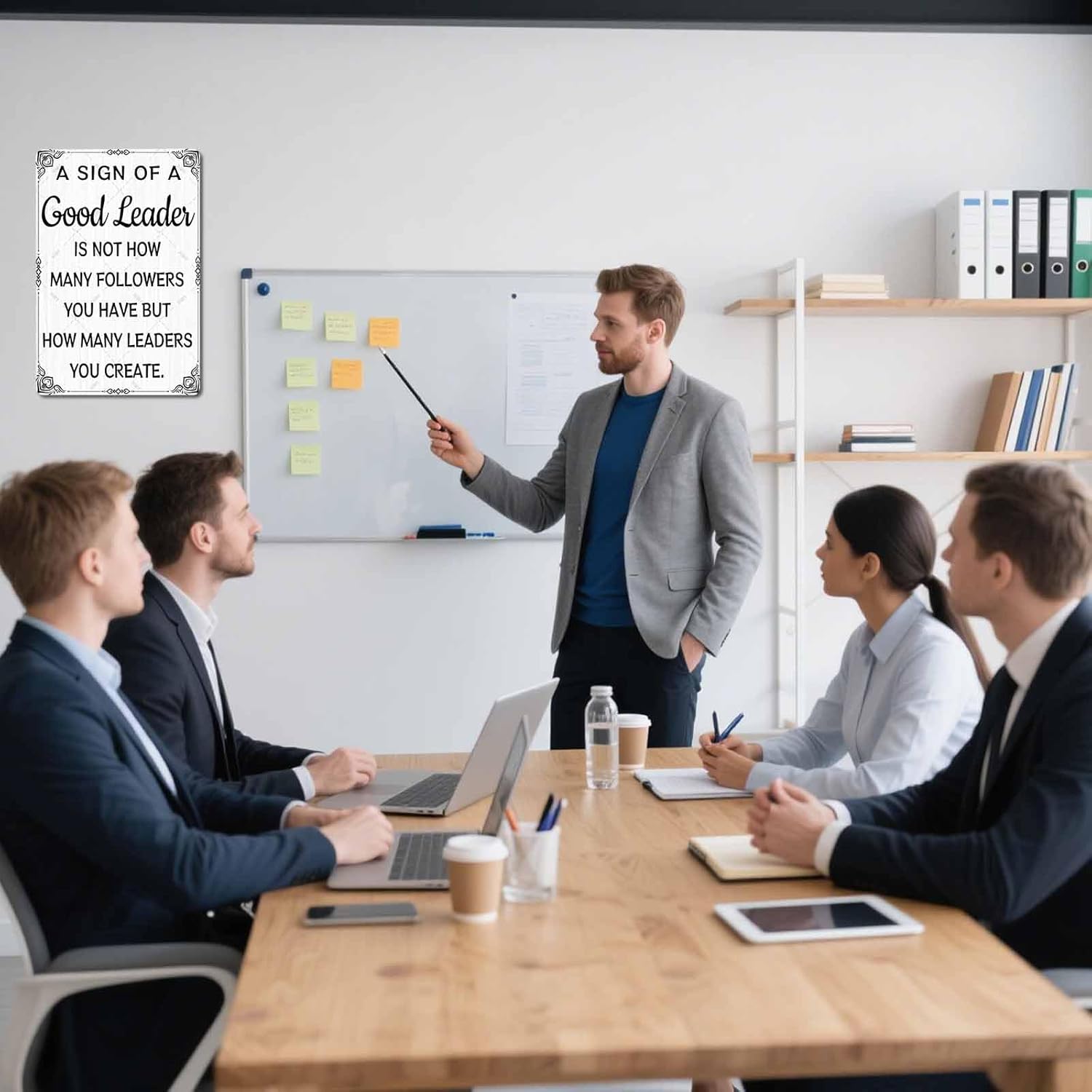 DZQUY Good Leader Metal Sign –12x8 Inches Inspirational Wall Art with Vintage Retro Design, Motivational Office & Home Decor for Living Room, Bedroom