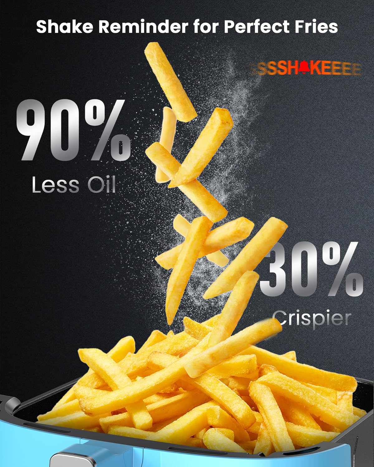 Nuwave Brio Plus Air Fryer 8 Qt, New & Improved, PFAS-FREE, 7 Digital One-Touch Cook Functions that AIR FRY, BAKE, ROAST, DEHYDRATE, TOAST, REHEAT, PREHEAT, 150 Presets, 50°F~400°F (Cozy Blue)