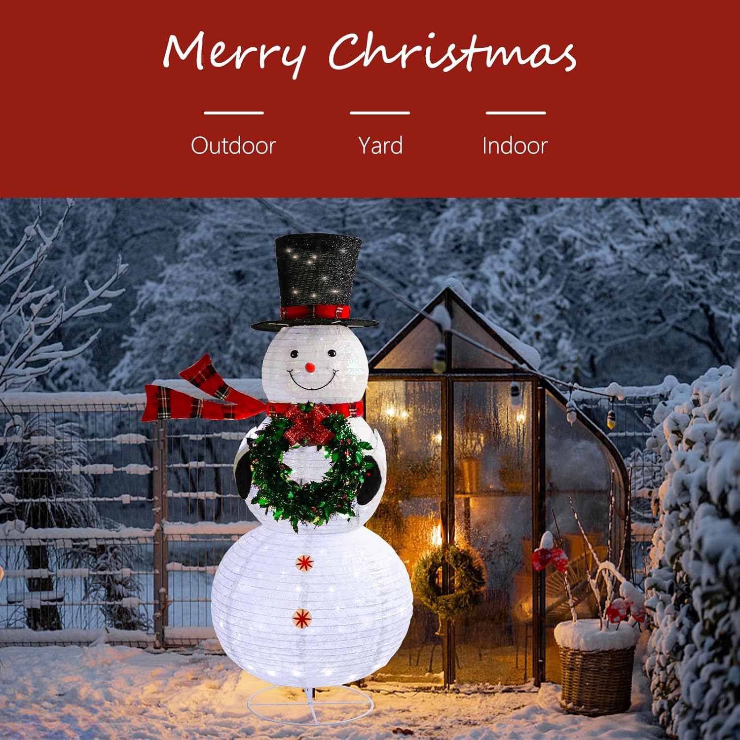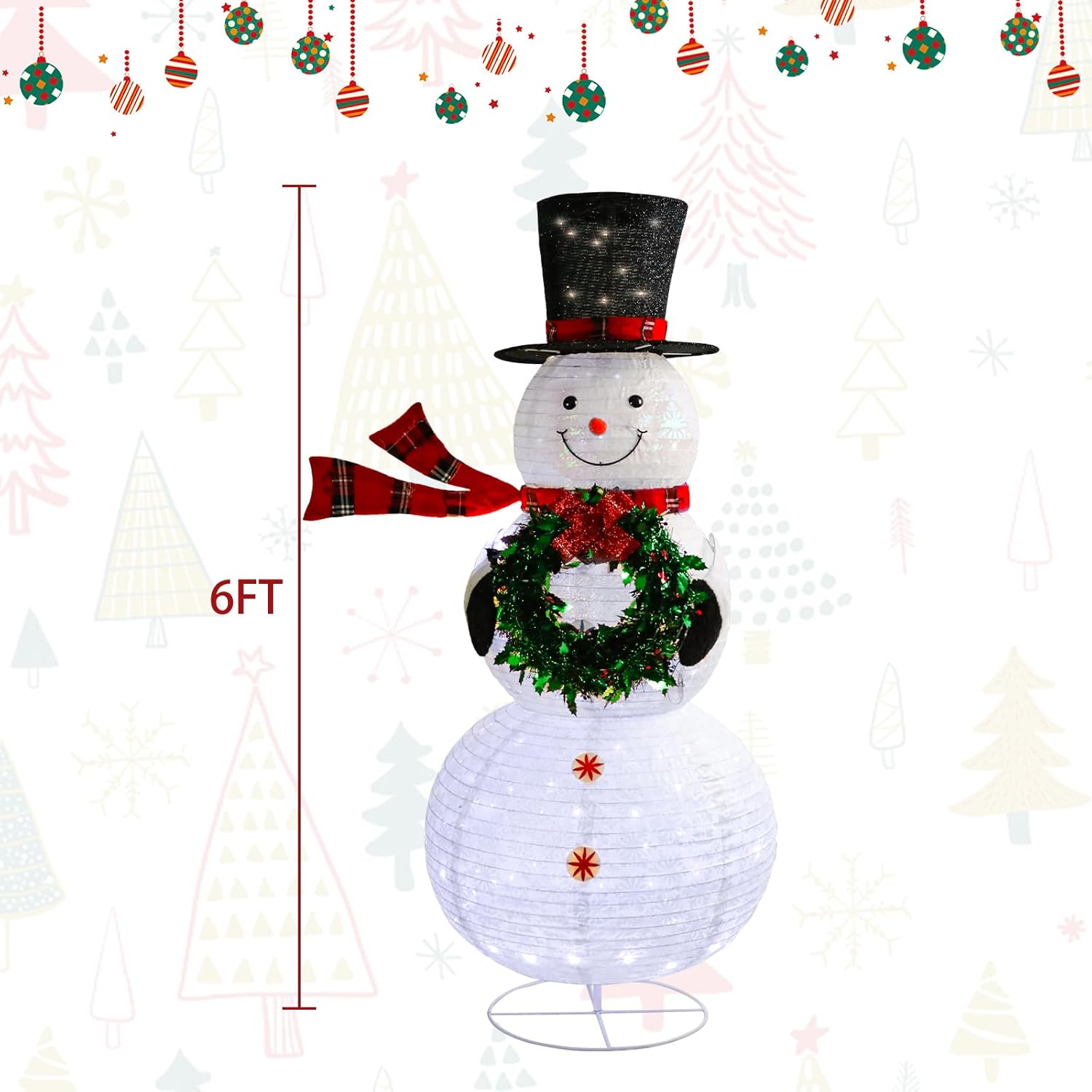 - Christmas Ligthed Decoration - The Christmas snowman lit up by 200 warm LED lights is wearing a red scarf and holding a wreath;The snowman and Christmas Eve are the perfect combination, bringing Christmas joy and blessings