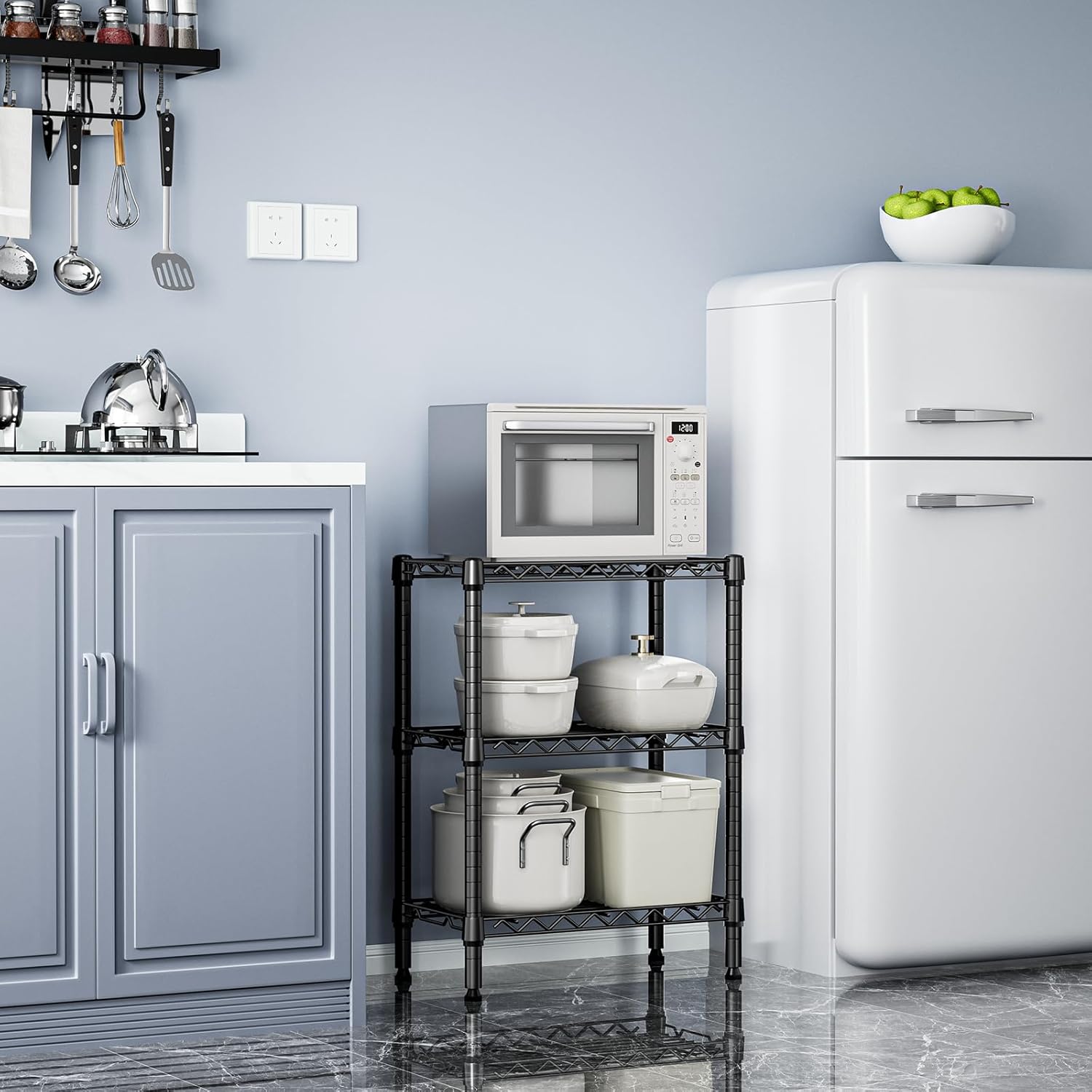 750 lbs 3 Tier Shelf Metal Storage Shelves Wire Rack Closet Organizers with PP Board for Garage Kitchen Bathroom Laundry Black 11.8" D x 21.7" W x 28.6" H
