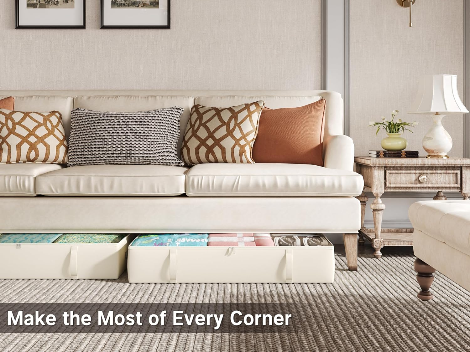 - Great Capacity - The very shallow under-bed storage container is 38.5" x 17.75" x 8"/98*45*20cm, and each holds 87 liters. Dust-proof under bed storage bins with double zippers make for smooth opening and closing. Ultra-thick fabric storage box with reinforced sides and bottom, sturdy for long-term use