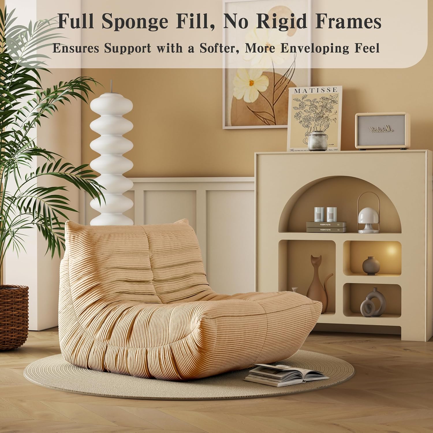 - Soft & Stylish Corduroy Fabric: Crafted with soft, high-quality corduroy, this chair feels as good as it looks. The breathable, skin-friendly fabric makes it a comfy spot for year-round lounging—cozy in the winter and cool in the summer. Its modern yet casual vibe fits effortlessly into any space.