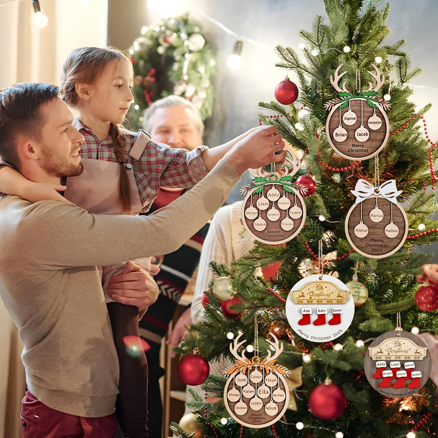 Personalized Christmas Ornaments 2025 with Names,1-7 Names Custom Ornaments for Christmas Tree Personalized Xmas Ornament Gifts for Family
