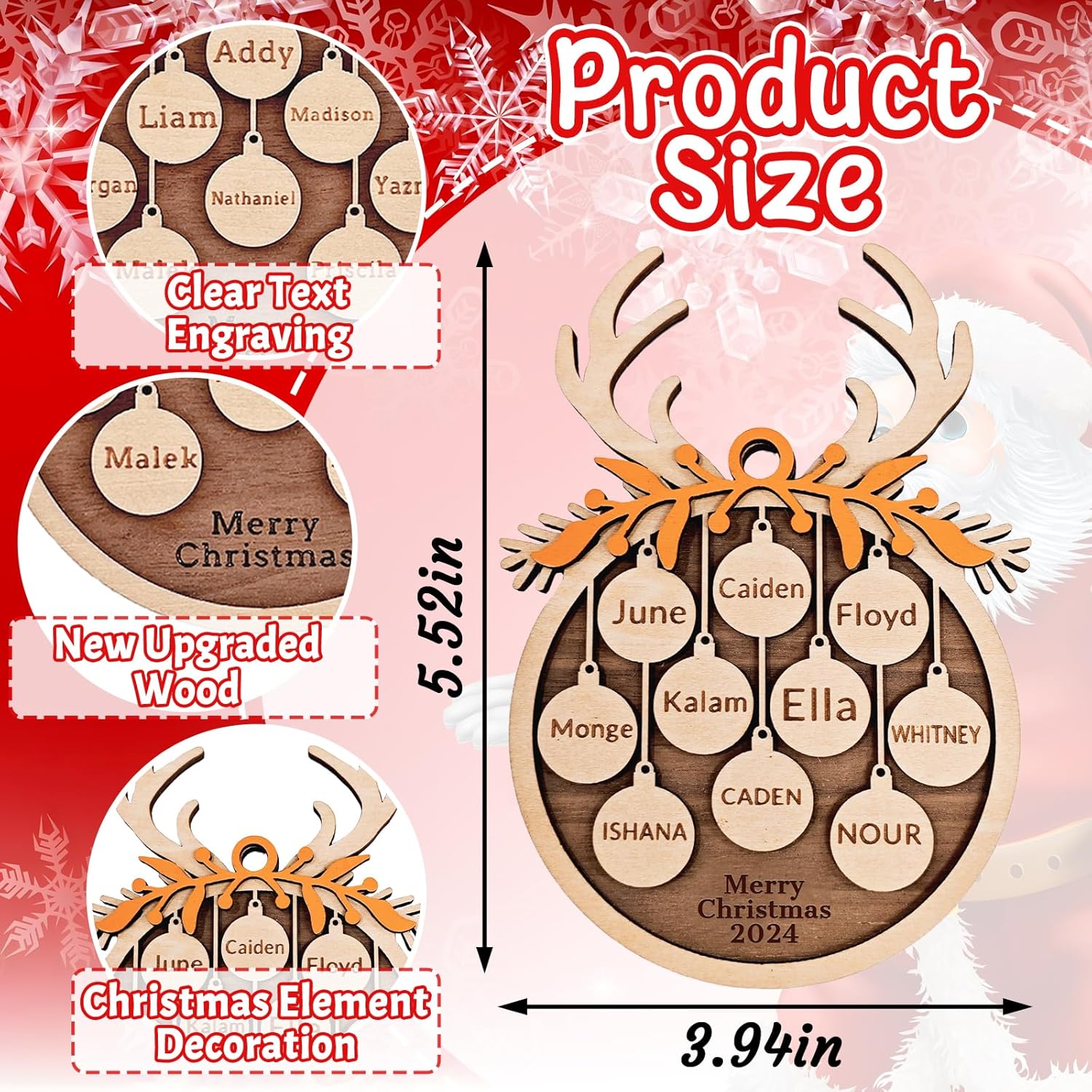 - 【Warm Gifts】: Personalized wooden Christmas ornaments with names can be used as gifts for family and friends, newlyweds celebrating their first Christmas, celebrating the arrival of new family members, I believe it is a meaningful way to create memories