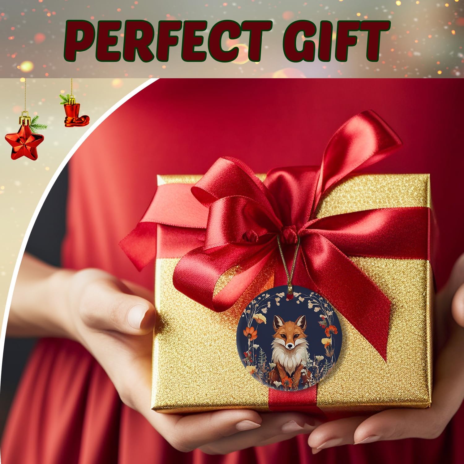Fox Ornaments, Fox Decorations, Fox Gifts for Women, Botanical Fox Ceramic Ornaments, Fox Decorative Hanging Ornament