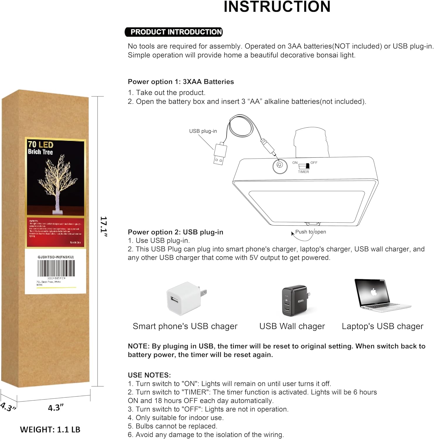 - Unique Design: 70LED Lighted Birch tree with warm white light, white trunk with perfect curve, coral-shaped branches add a mesmerizing atmosphere.