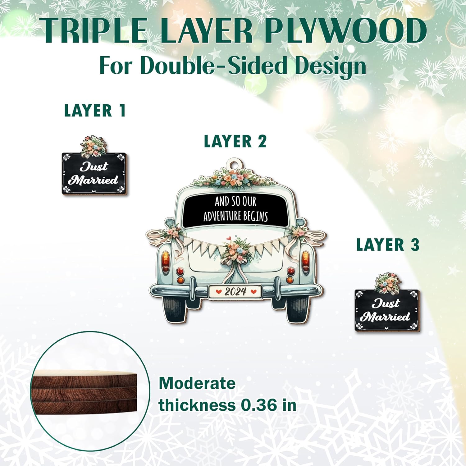 - PREMIUM QUALITY - Constructed with top-notch plywood, these durable yet lightweight decorations are built to endure the trials of time. They are resilient against breakage, deformation, and accidental falls, promising to maintain their elegance for years to come. These Christmas ornaments are an exquisite inclusion to your seasonal ensemble.
