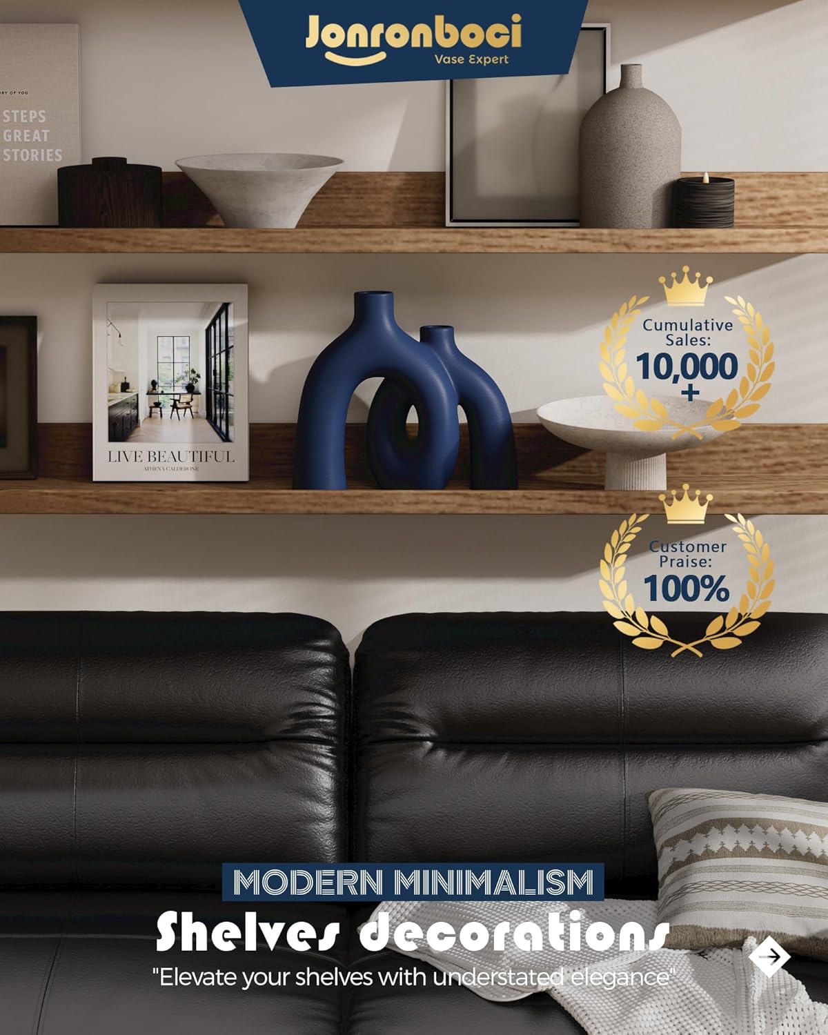 - Hug Donut Nvy Blue Decor Vase Use Scene - Minimalist and modern design Coastal&Nautical Style Decorations vases for living room large shelf, bookcase, Entrance table, sofa table, console table, fireplace or mantle. Of course, Your use it to display dried flowers, reeds, natural pampas grass, rabbit tails, or any kind of fresh flowers.