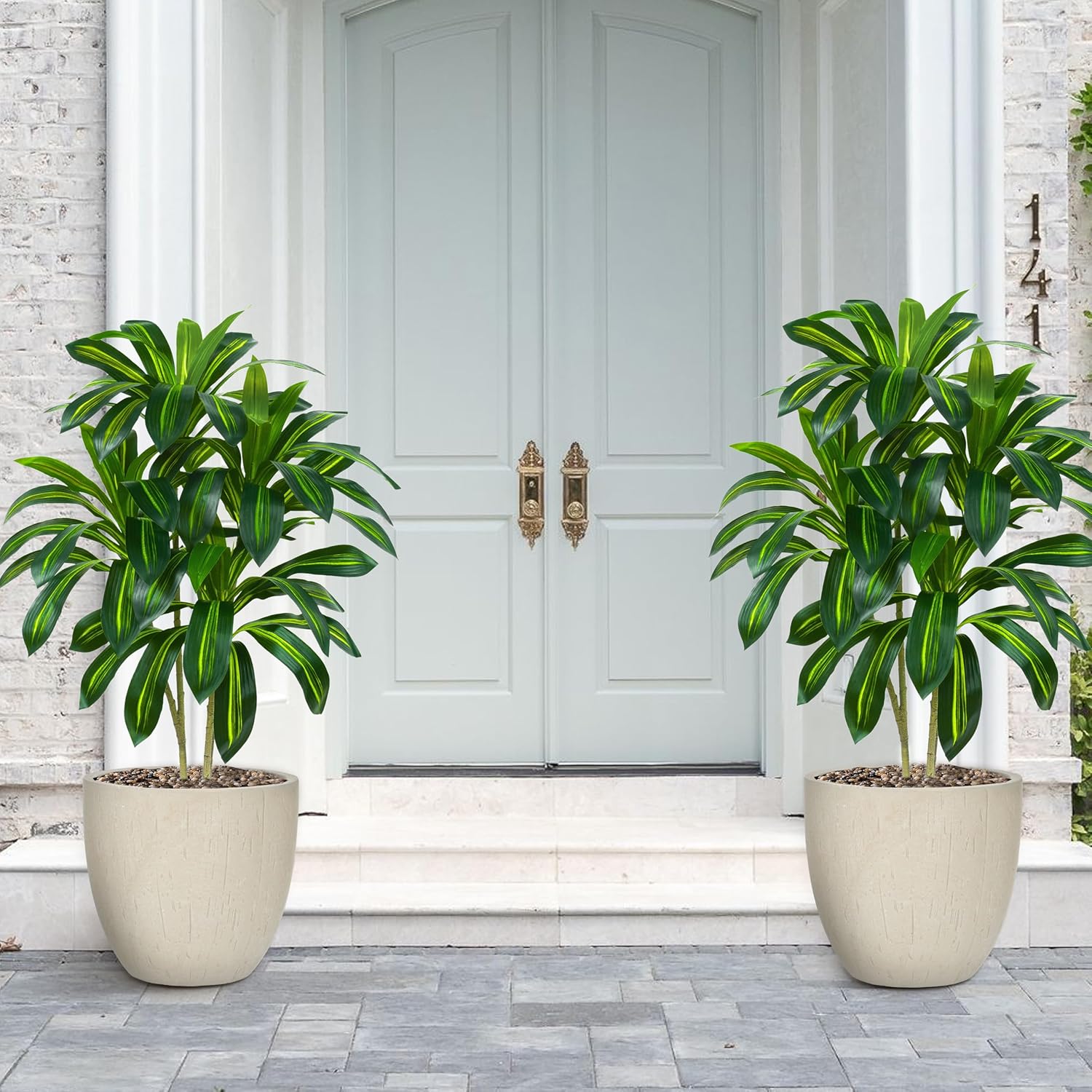 Artificial Dracaena Tree Artificial Silk Tree Faux Tree with White Tall Planter Fake Tropical Yucca Floor Plant (2, White Planter, 4 FT)