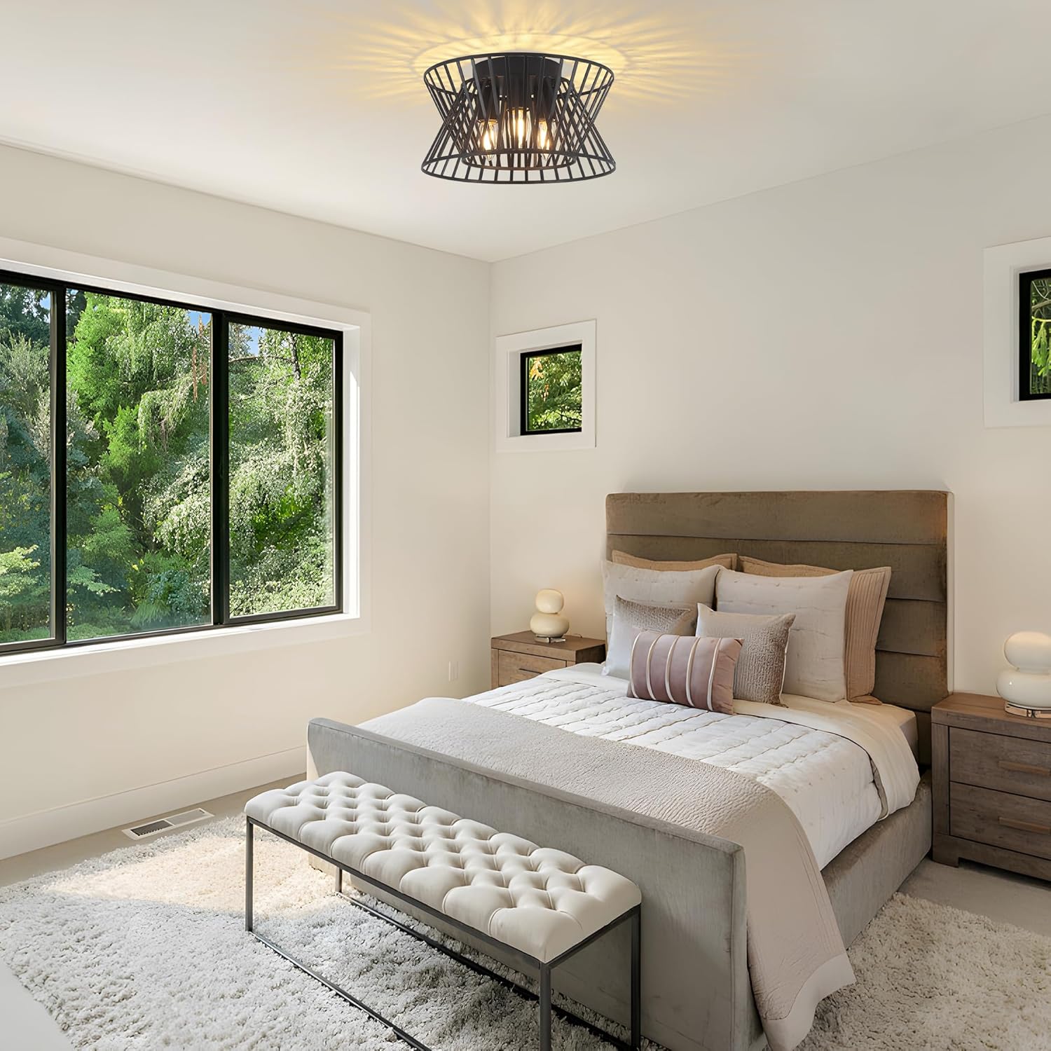 - Product Size: This black ceiling light is 12.59 inches wide and 9.84 inches high, 3 E26 bulbs, (Compatible with LED bulbs (up to 60W). This semi flush mount ceiling light is fully dimmable when paired with a dimmable bulb and dimmer switch (bulb and dimmer switch not included) for customizable lighting