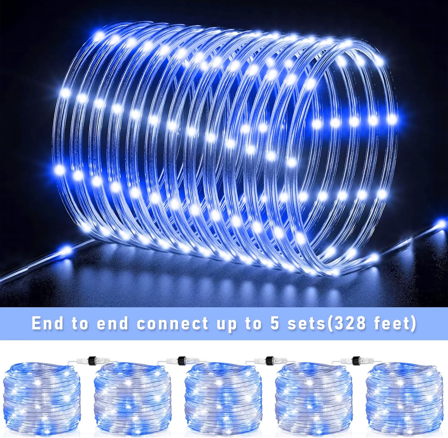 - 【Upgraded Connectable Rope Lights】- Our rope lights for outside feature a 66ft lighting length with a 6.6ft lead wire, total 72.6ft length. LED bulbs are spaced 4 inches apart to provide bright and soft lighting. The led rope lights can be connected end to end up to 5 sets, long enough to meet your creative lighting decor needs.