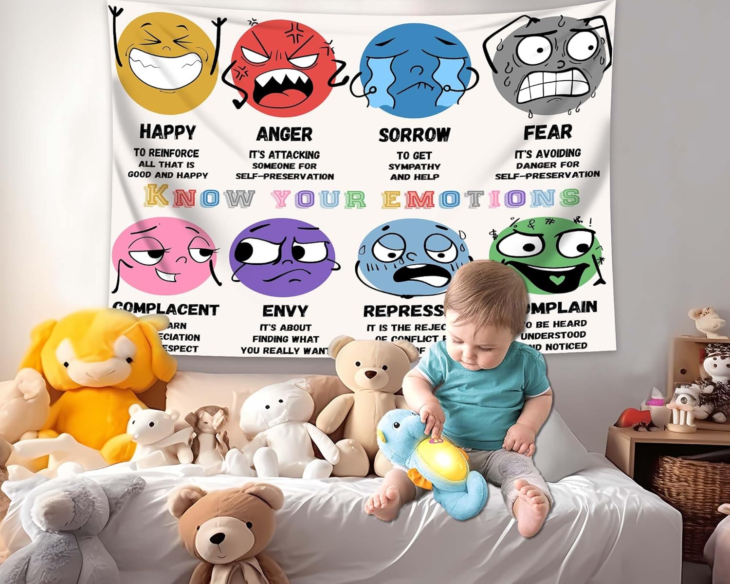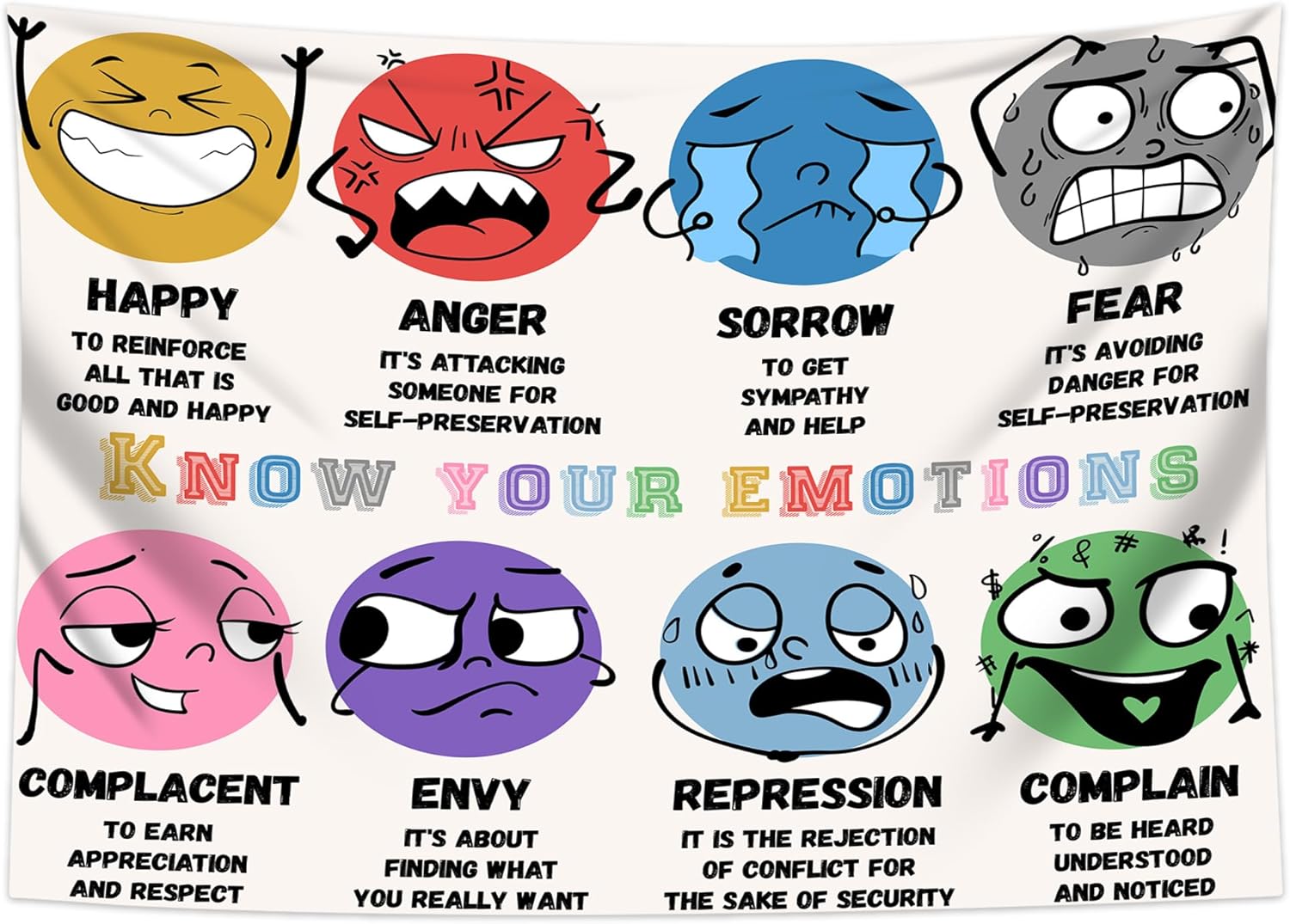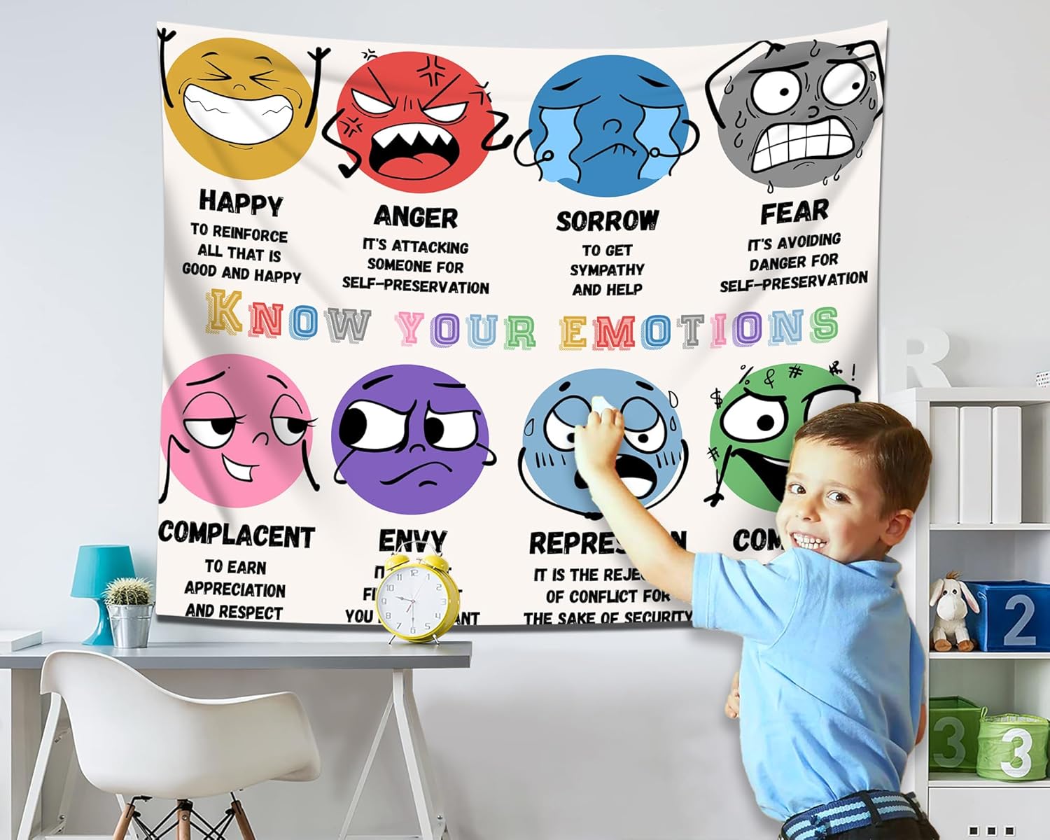 dueeia Mental Health Therapy Tapestry Wall Hanging Counseling Office Classroom Inspirational Motivational Tapestries for School Bedroom Living Room Wall Decor (59.1"x51.2")