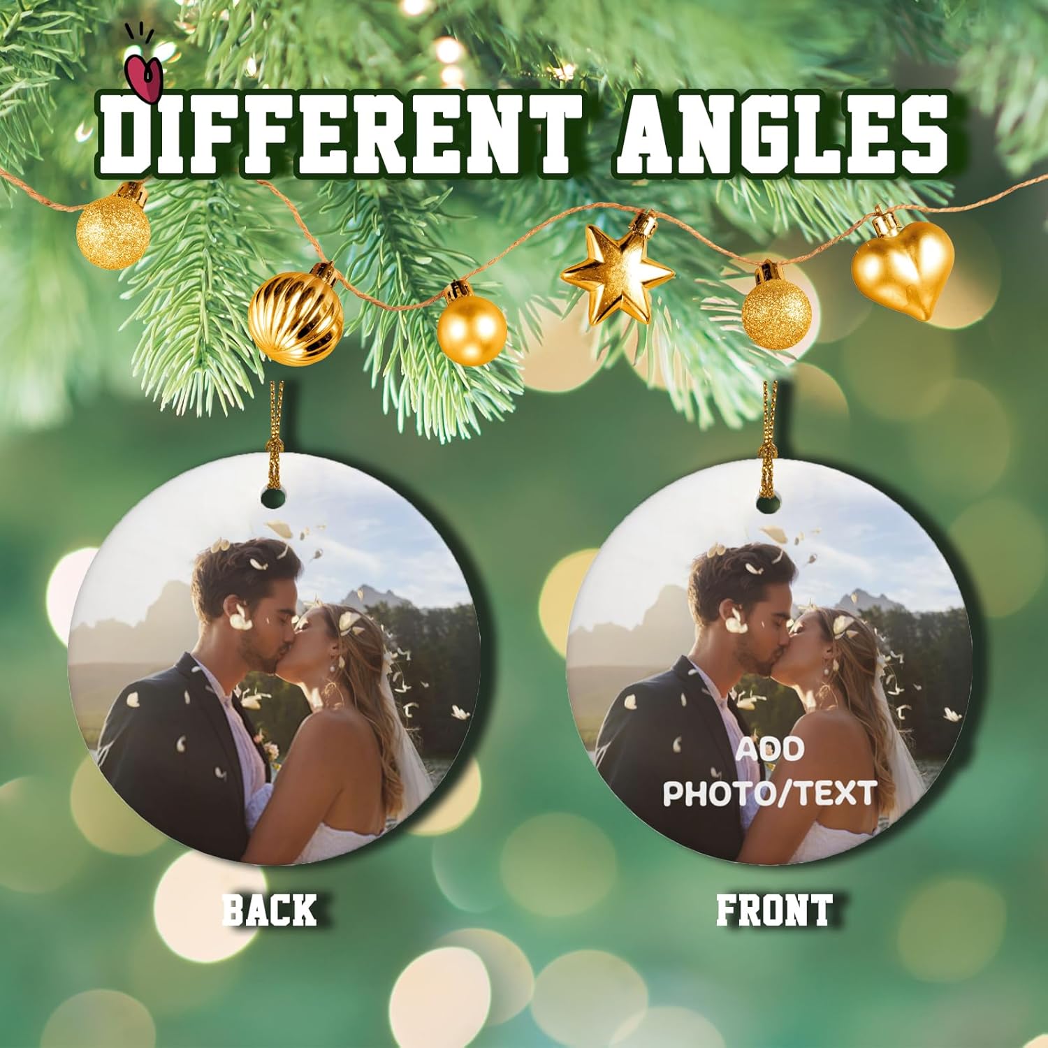 - High-Quality Personalized Ornaments---This custom Christmas ornaments are made of high quality ceramic, 3’’, and has smooth touch feeling. And used advanced thermal transfer technology make print effect looks wonderful, it will never fade you can design it on Christmas tree, door or outside.