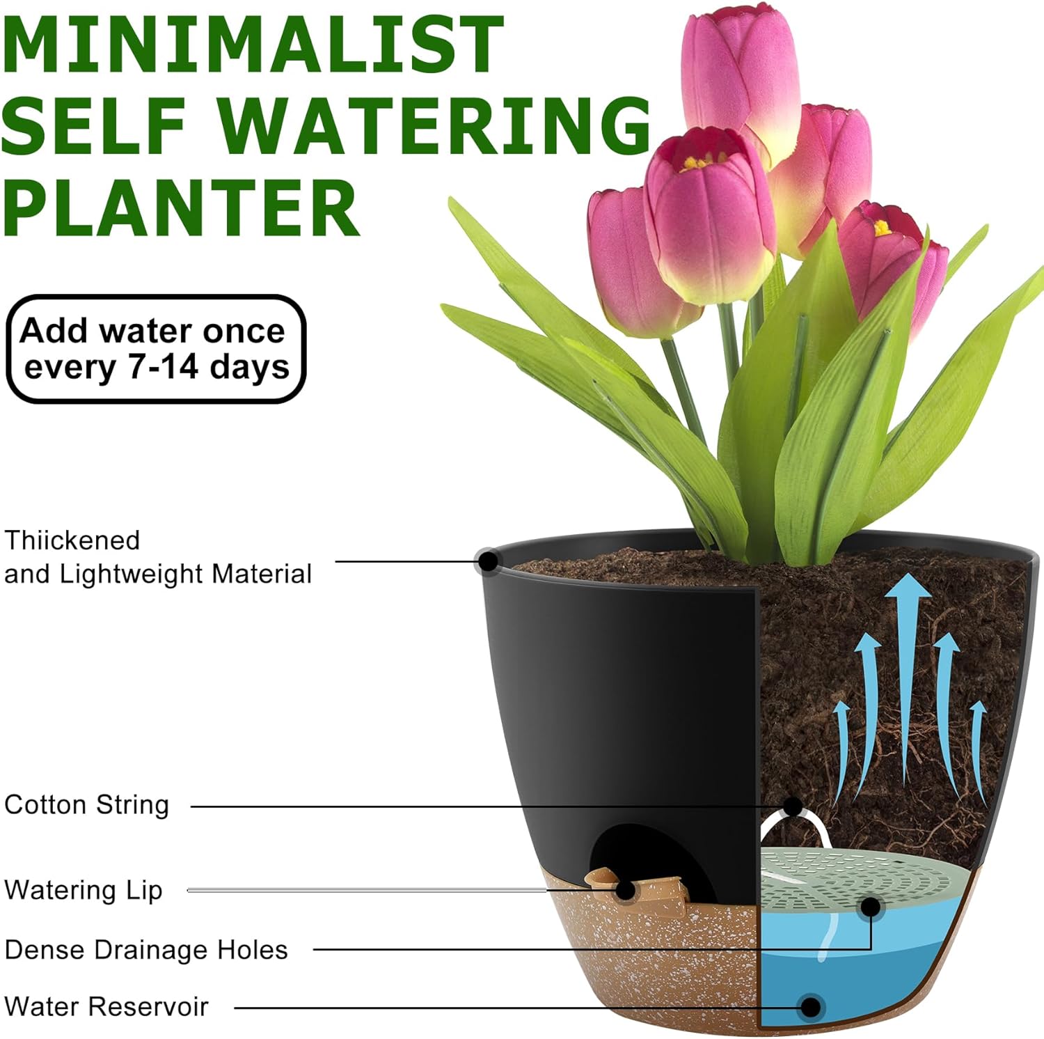 - 【Excellent Drainage Holes】-Mesh drainage holes on the bottom.A separate reservoir completely separates the plant growth environment from the water storage environment, and we don't have to worry about the flooding of plants anymore.