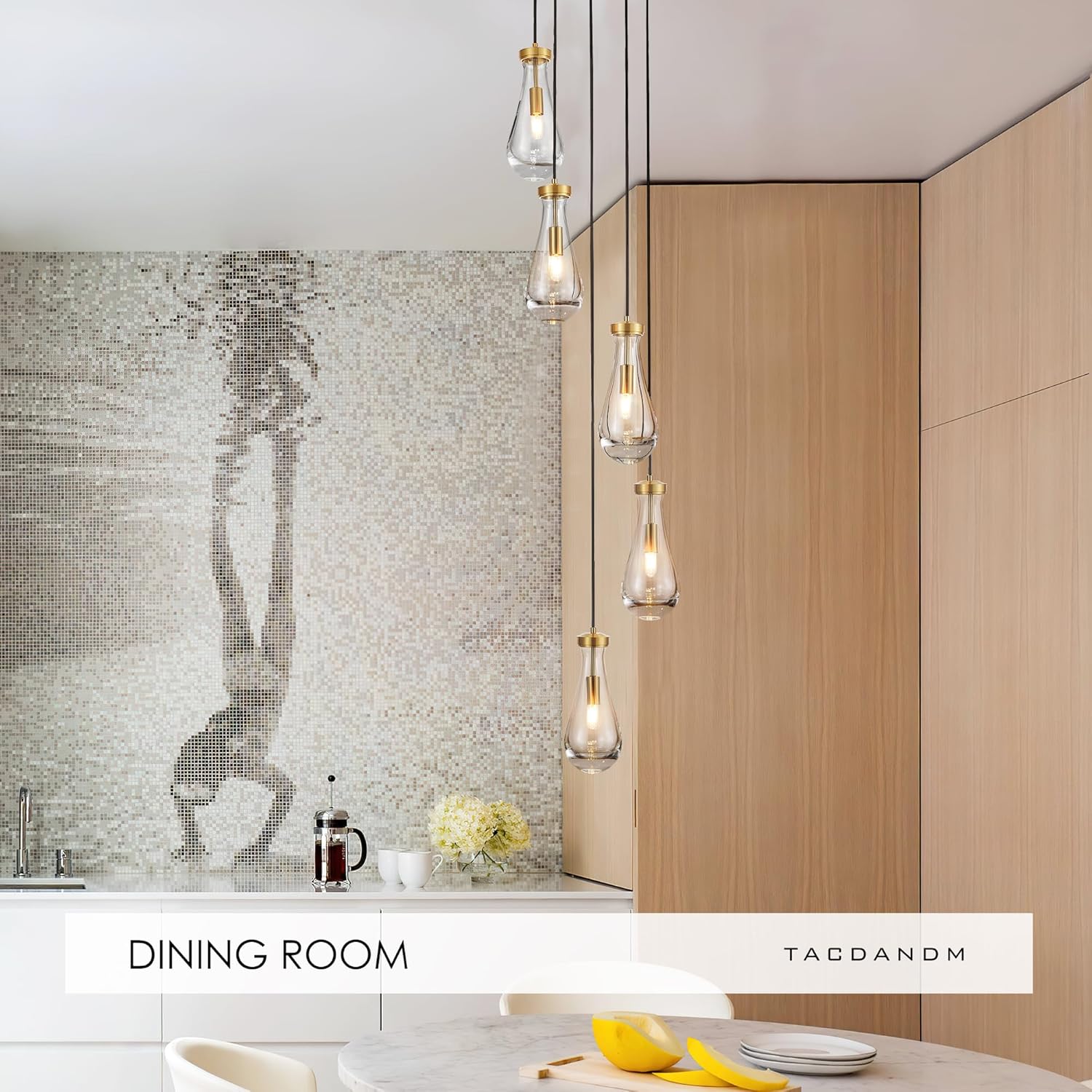 5-Light Raindrop Pendant Light Fixtures, Brass Glass Pendant Lighting, Teardrops Modern Hanging Light for Entryway Foyer Kitchen Island Dining Living Room Hallway