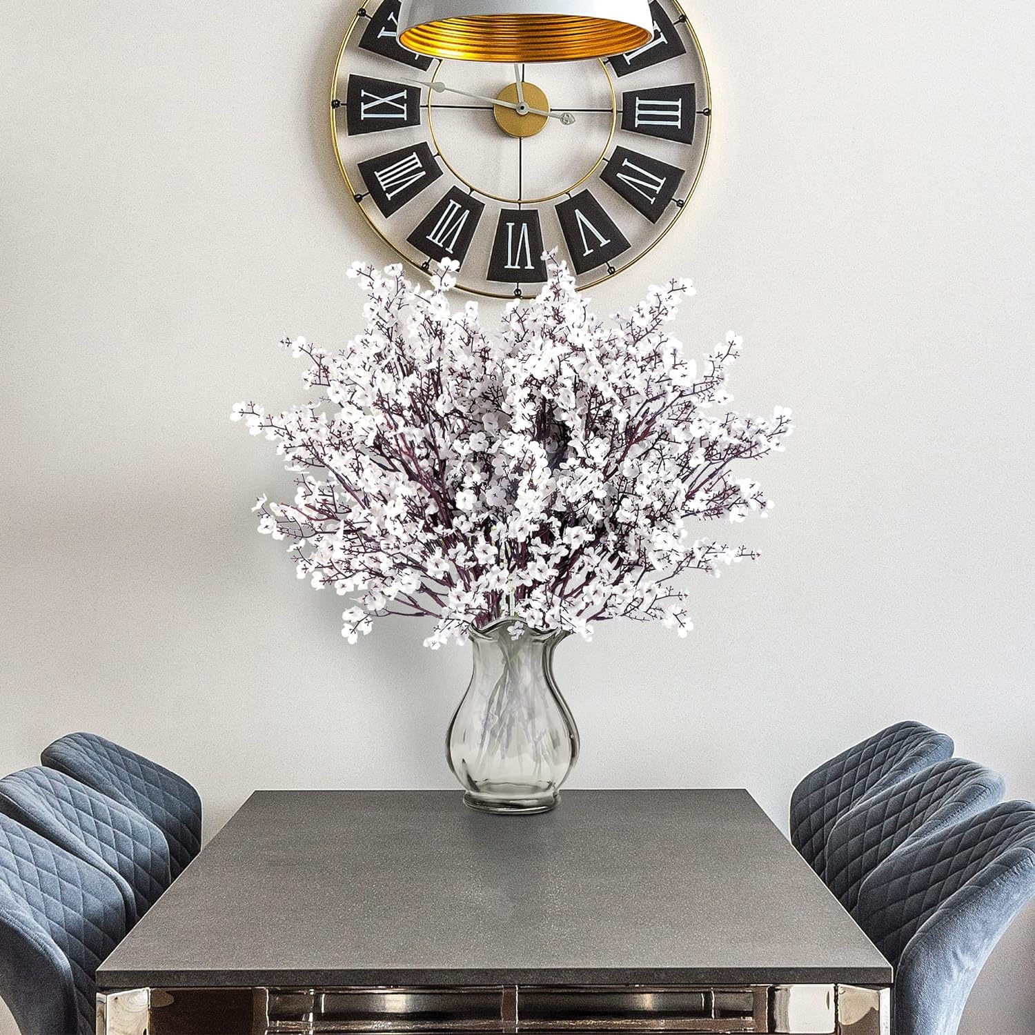 - [REALISTIC APEARRANCE]:This gypsophila bouquet have vibrant color and lifelike features. It gives your home a feeling of vivid, natural and elegant. Every petal is naturally curled and manually installed, you can feel the rich layers and softness of the silk.