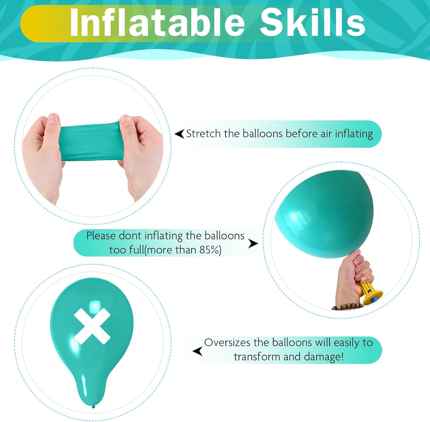 - Warm Tips: Please avoid exposing pastel color balloons to direct sunlight before use to avoid affecting the quality and life of the balloons pastel; During the inflation process: Please inflate the globos into a round shape to prevent the helium balloons from bursting; Choking Hazar: Adult supervision is required; Keep uninflated assorted balloons away from children
