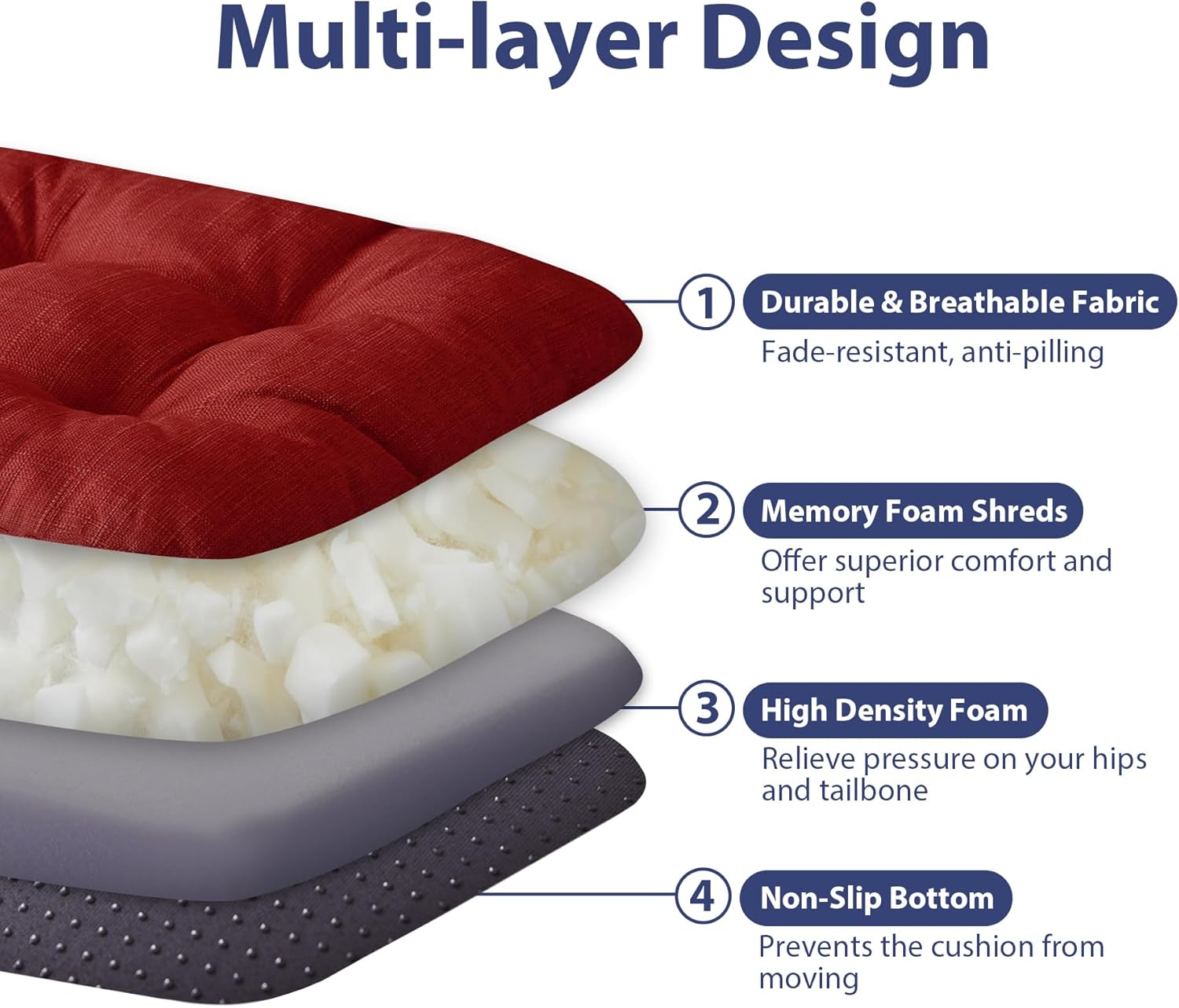- 【Premium Memory Foam Support】: Designed with high-density memory foam for long-lasting support and comfort, our dining chair cushion offers superior comfort and support, relieving pressure on your hips and tailbone during extended seating