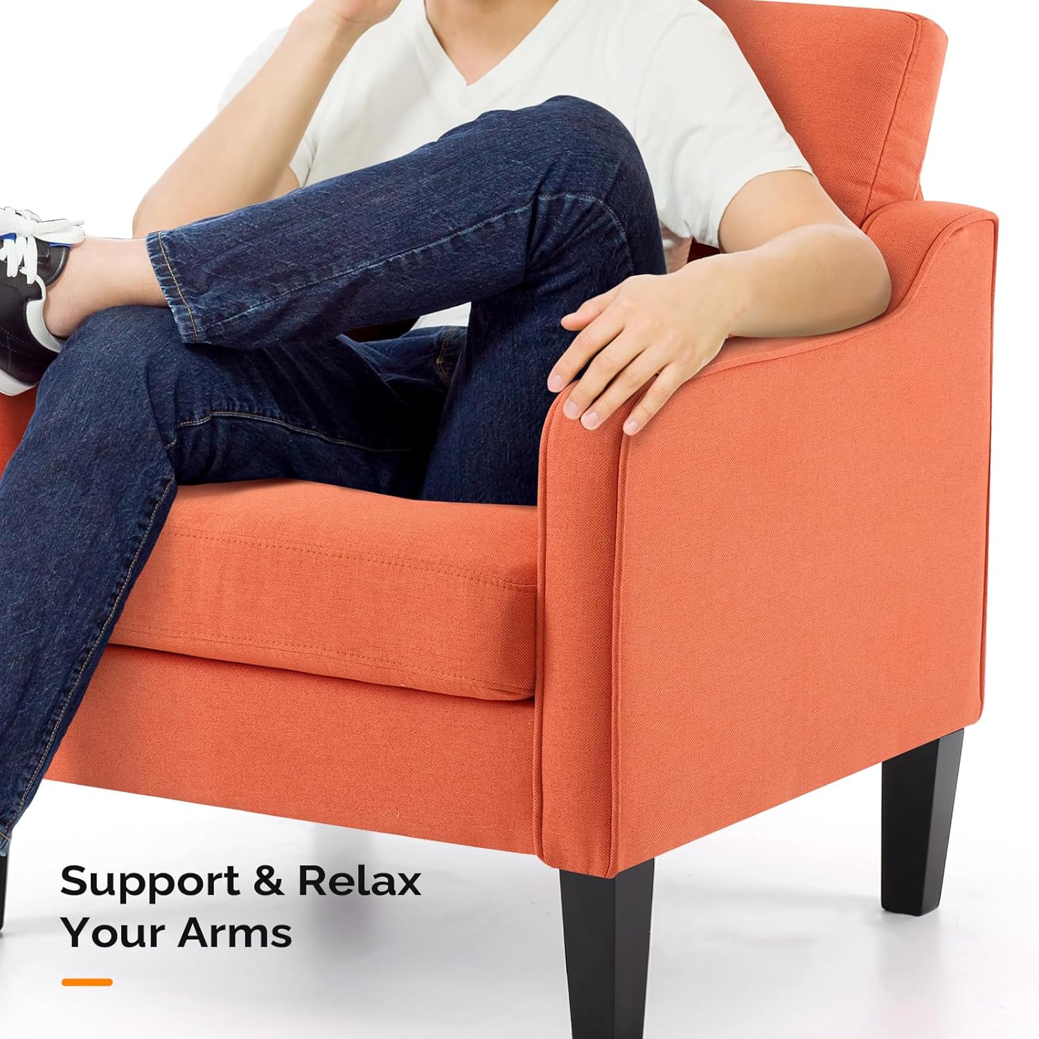 - Home Accent Essential--Our arm chair features a minimalistic yet midcentury style silhouette, making it a timeless piece that fits into most decor styles. Its comfort and style make it a perfect fit for your living room, bedroom, apartment, upstairs loft, cozy nook, or even your office space.
