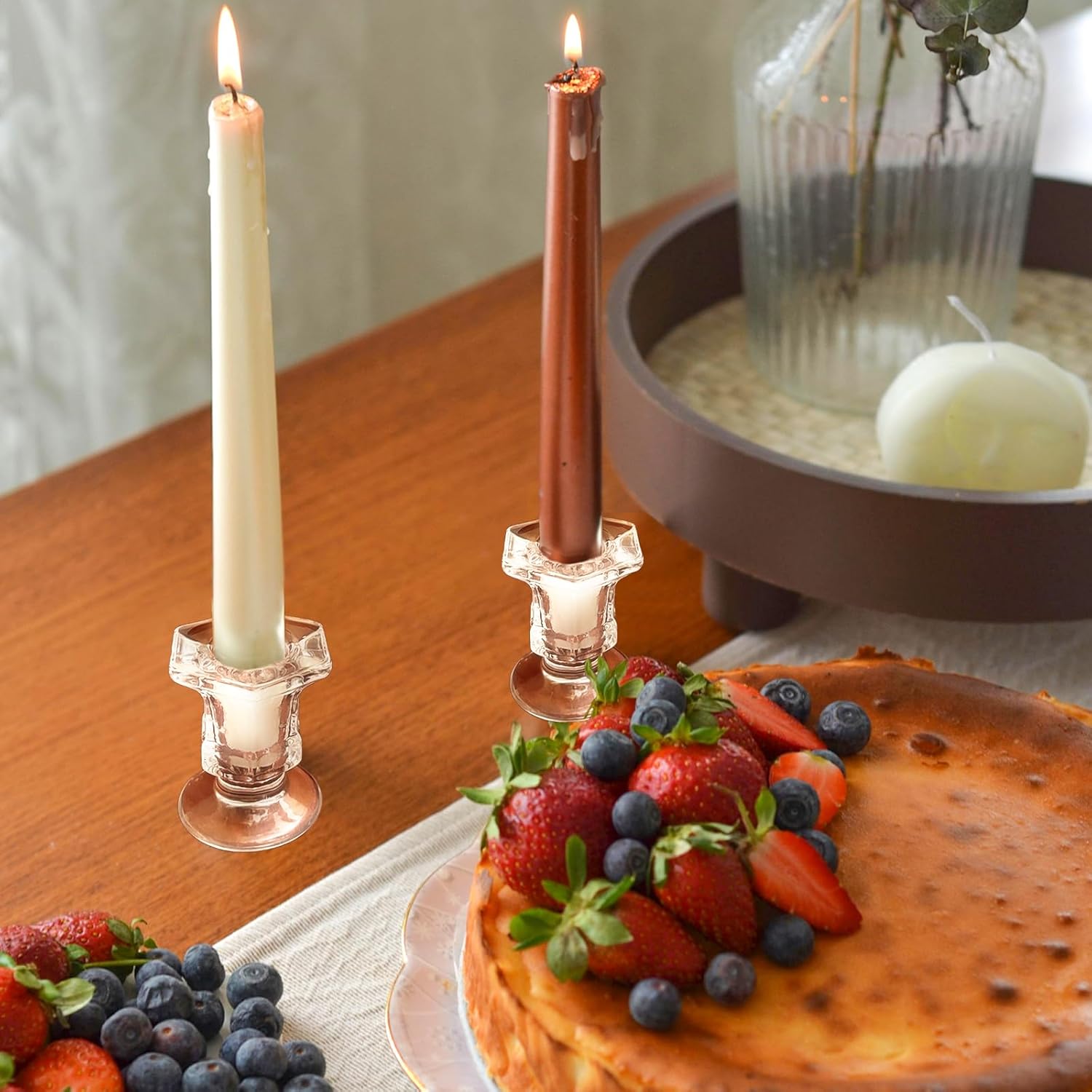 - Dimension - The clear candle holder measures 1.97 x 2.2 inches/ 5 x 5.5 cm, small and compact, suitable for coffee table, dining table, please confirm the size before purchase.