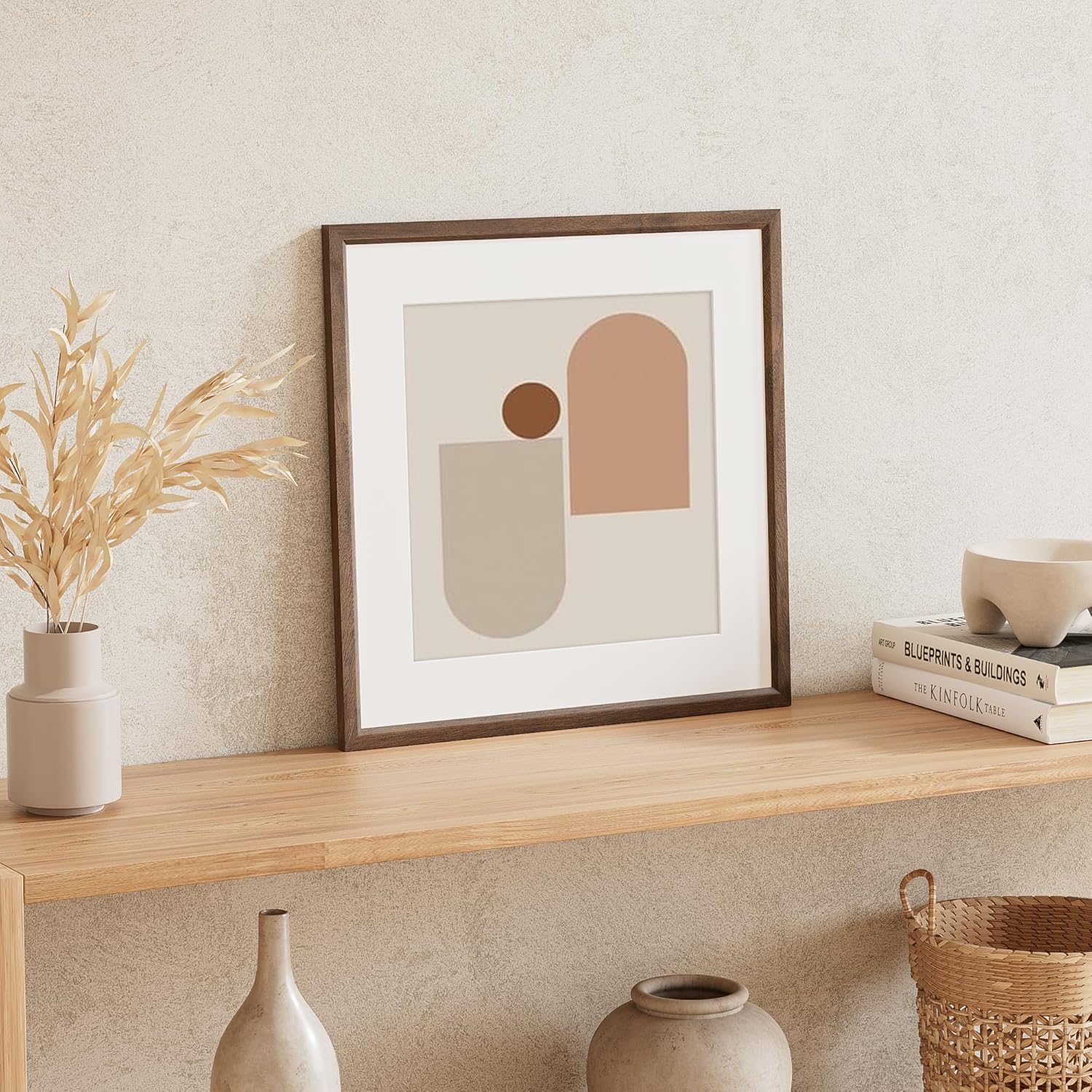 16x16 Picture Frame Natural Solid Walnut Photo Frames with 12x12 Removable Mat Wall Hanging Large Handcrafted Frame with HD Plexiglass Wall and Tabletop Display Large Poster Frame