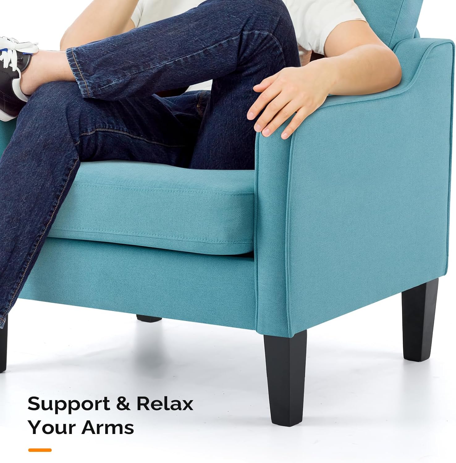 - Home Accent Essential--Our arm chair features a minimalistic yet midcentury style silhouette, making it a timeless piece that fits into most decor styles. Its comfort and style make it a perfect fit for your living room, bedroom, apartment, upstairs loft, cozy nook, or even your office space.