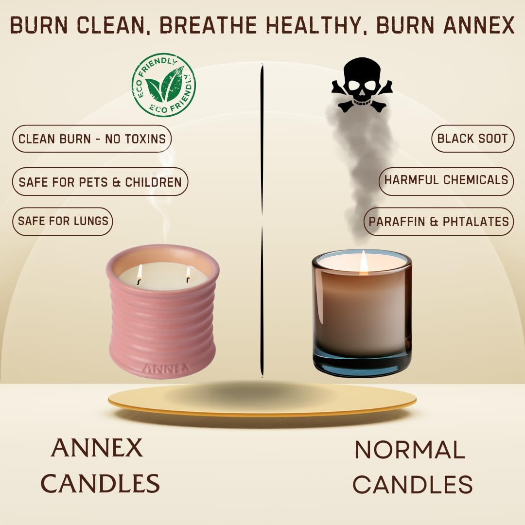 - ๐ฏ๏ธ HANDMADE SOY CANDLES WITH LUXURY SCENTS: Over 500,000 customers have enhanced their homes with Annex handmade soy candles for women. Featuring elegant scents such as lavender, vanilla, eucalyptus, peppermint, rose, sandalwood, and volcano. Designed to provide long-lasting fragrance in any space. Each candle is thoughtfully crafted with a clean burning of 50 hours with thoughtfully selected ingredients.